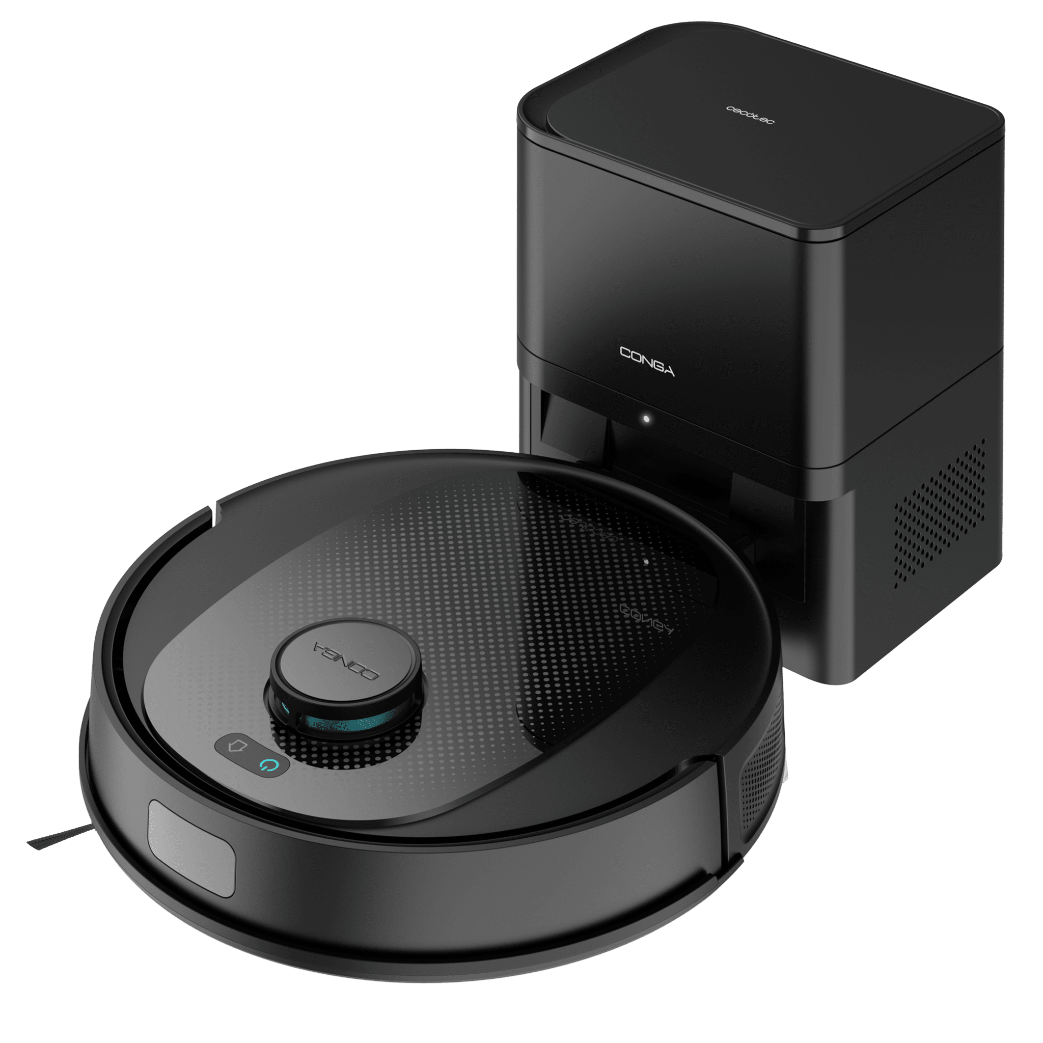 Robot aspirador Conga 7690 Immortal Max Home con tecnología de navegación láser. Base de autovaciado con 2,5 L de capacidad. Limpieza 4 en 1: barre, aspira, friega y pasa la mopa. Potencia de succión de 5000 Pa. Hasta 220 minutos de autonomía. Cepillo central de silicona, óptimo para pelo de mascotas. Mopa de fregado y 1 cepillo lateral. Control APP y asistentes virtuales. Conexión Bluetooth y WiFi para redes 2,4 GHz y 5 GHz.