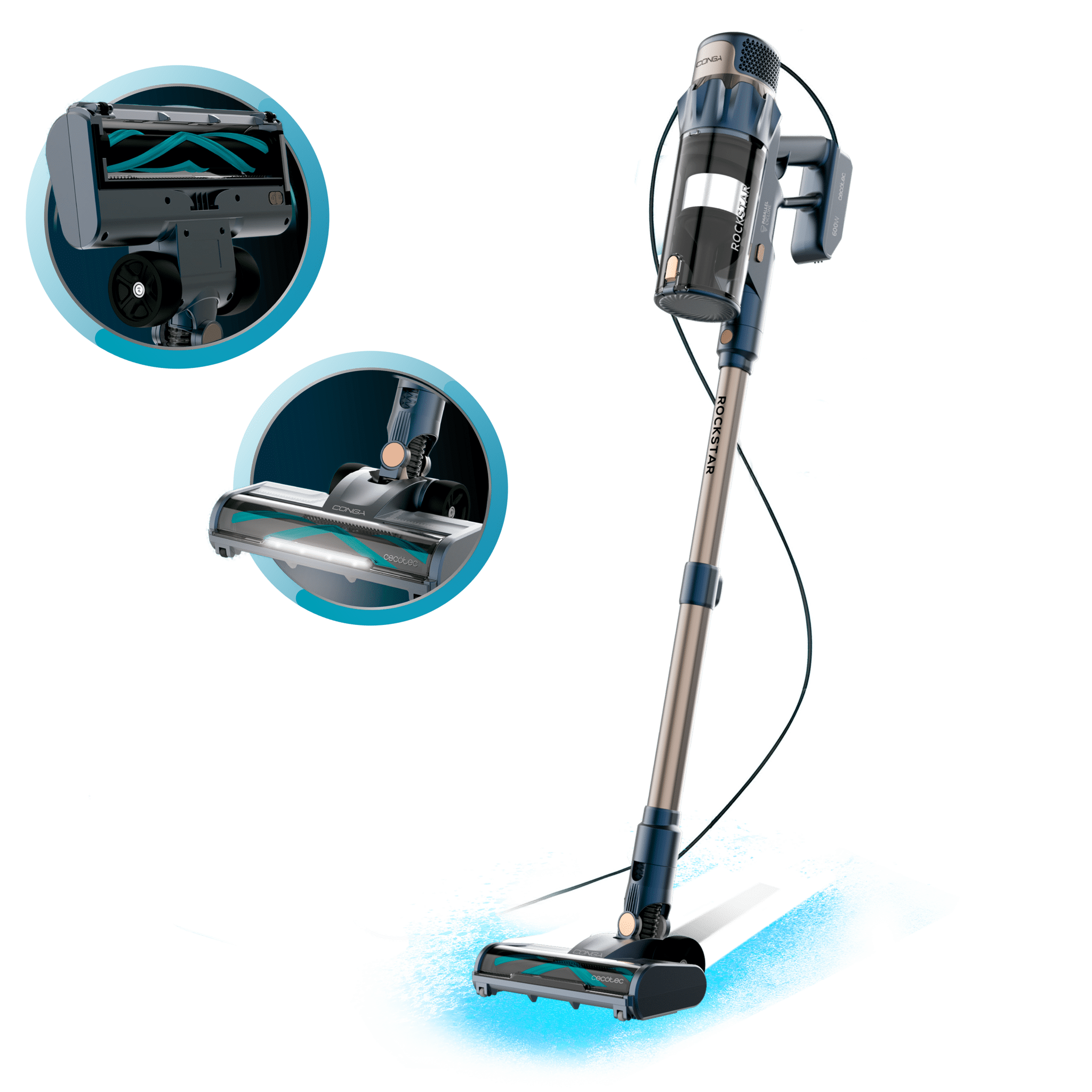 Aspirador vertical con cable, con cepillo motorizado y tubo telescópico.