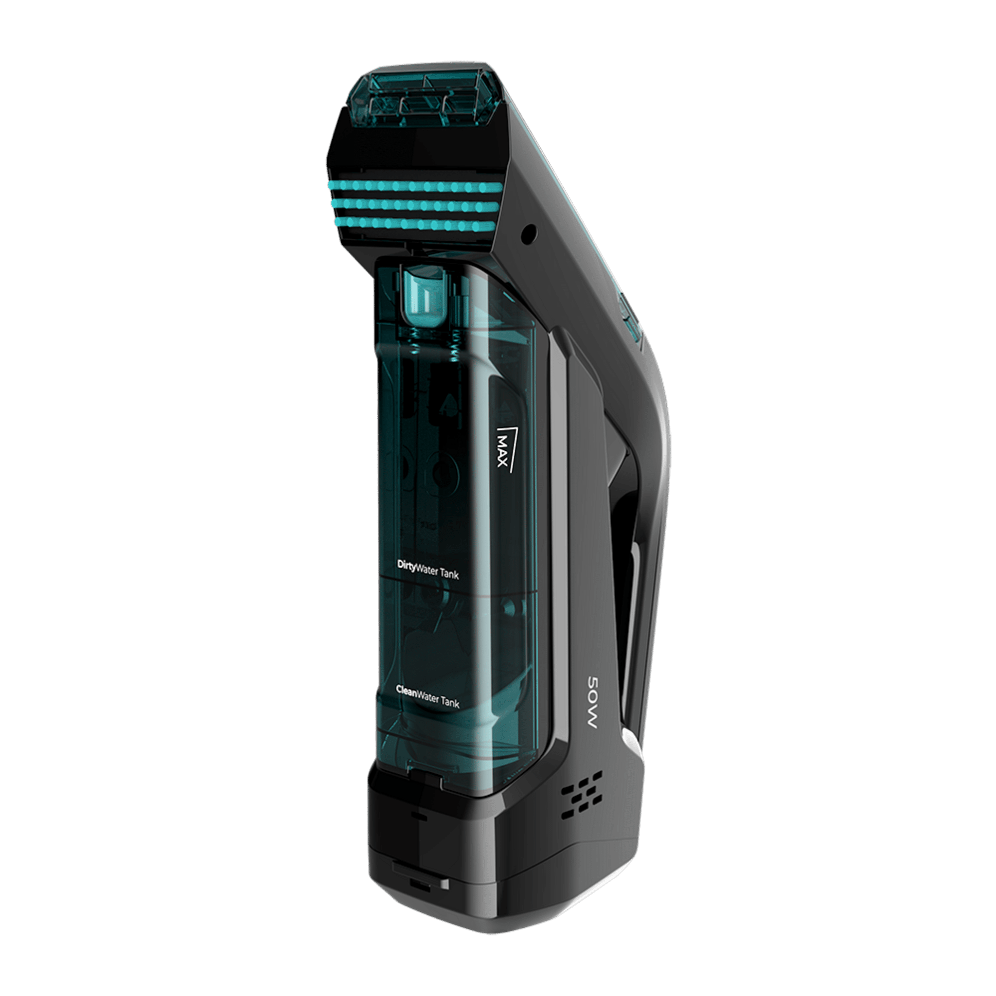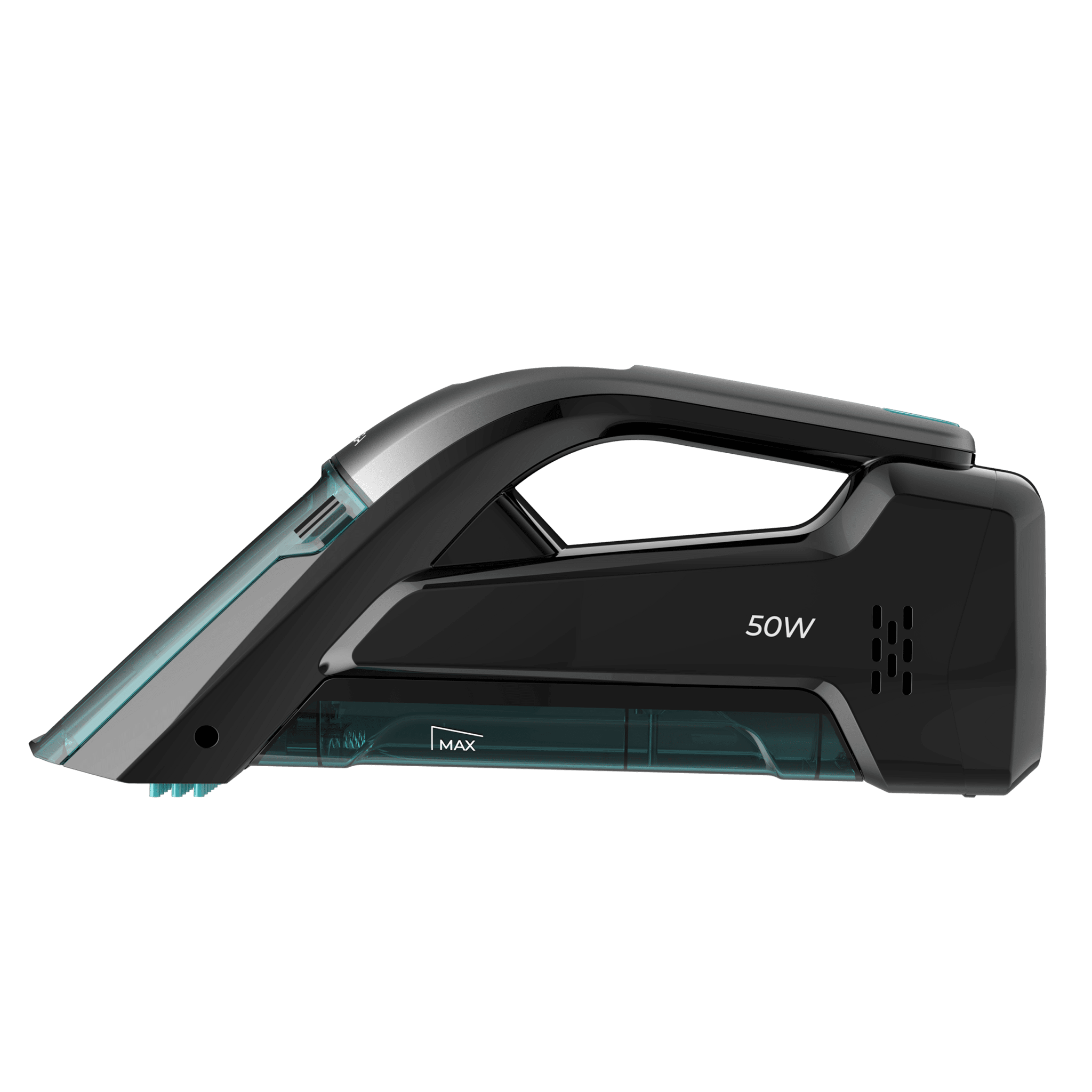Aspirador de tapicecerias de mano con depósito de agua limpia y agua sucia por separado, cepillo de cerdas para desincrustar la suciedad y 20 minutos de autonomía.