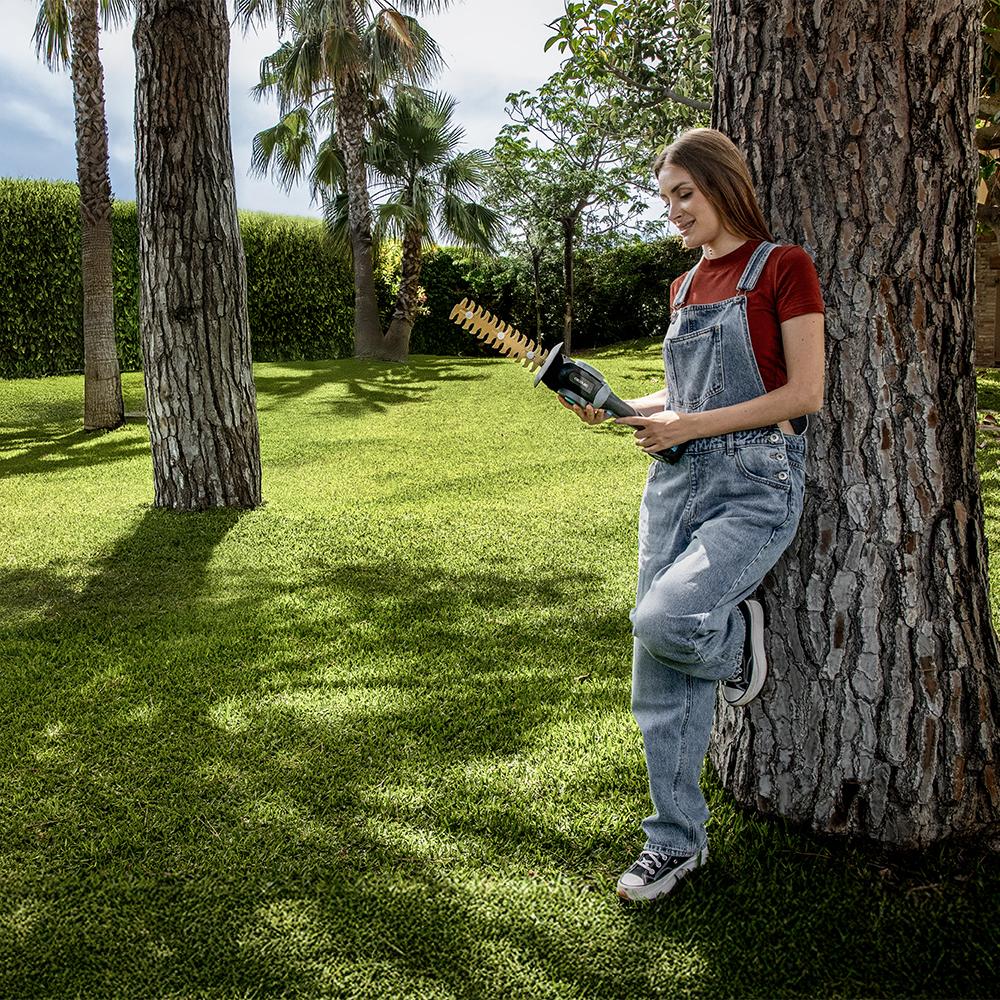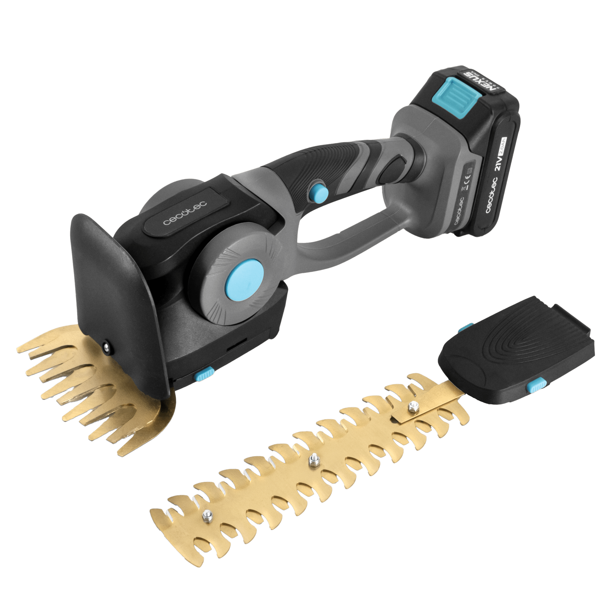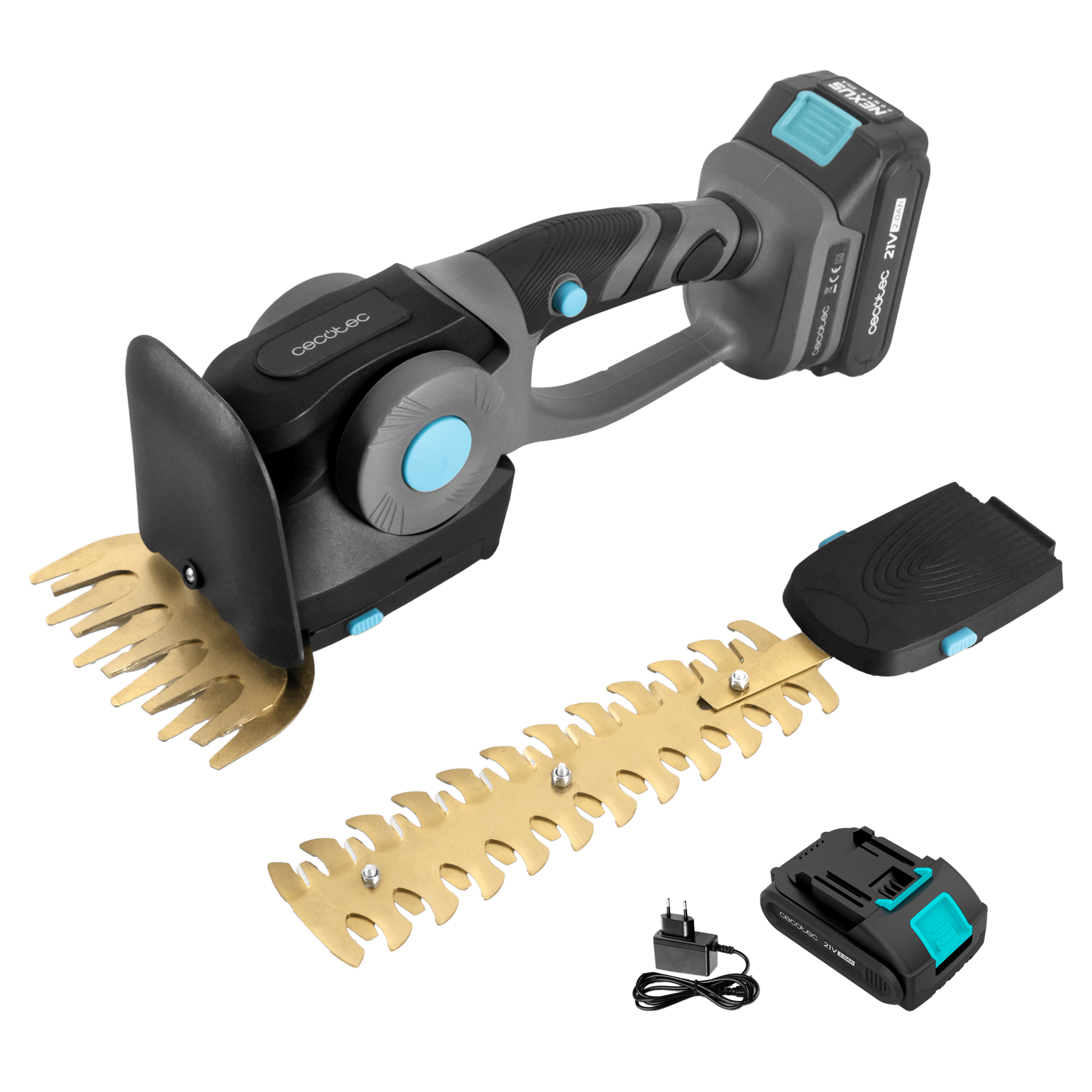 Cortasetos de mano 2en1. Batería 21V. Motor sin escobillas, Brushless. Cuchillas de titanio. Incluye dos acesorios para diferentes tipos de corte.