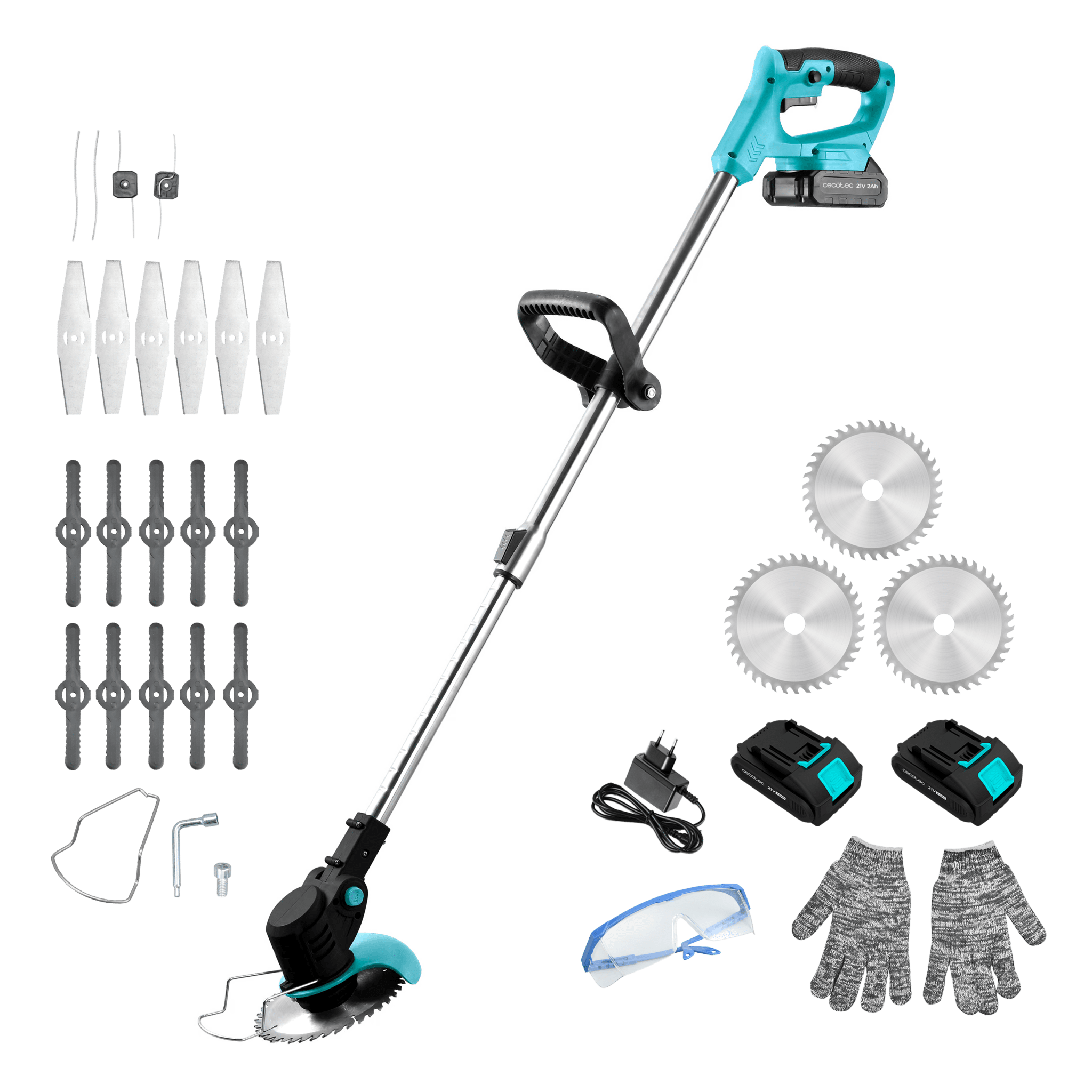 Desbrozadora multifunción 4in1. Batería 21V. Potencia de 650W. Cabezal orientable. Tubo telescópico. Incluye accesorios y recambios.