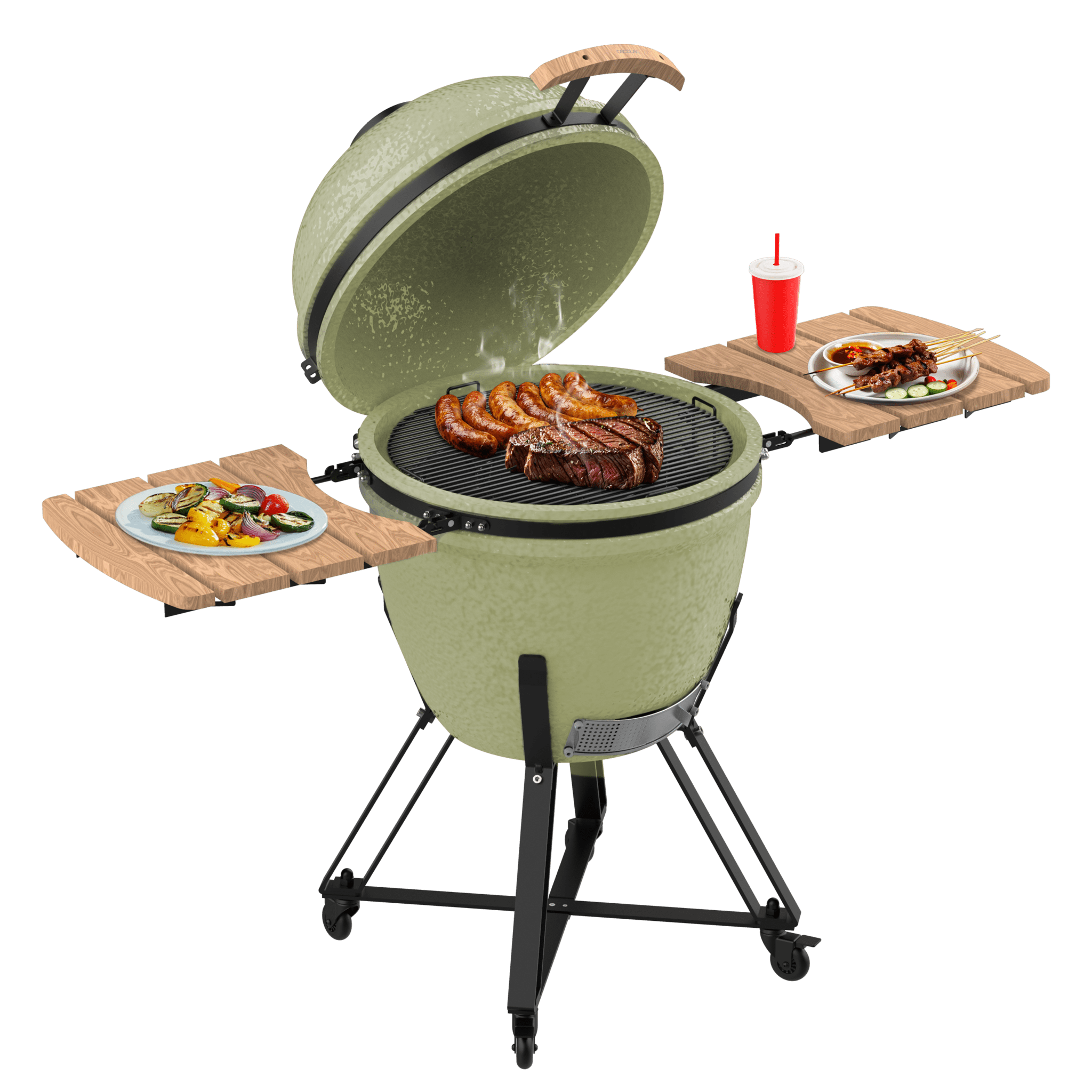 Pack de accesorios para barbacoa kamado DragonFire 4600 que incluye pinzas, cubierta protectora y atizador.