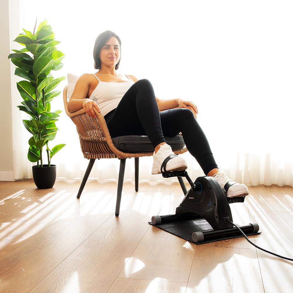 DrumFit Cycle Compact Pro Pedales estáticos Ejercita piernas o brazos. Control remoto. Motor de asistencia. Niveles de velocidad. Pantalla LED. Alfombrilla antideslizante.