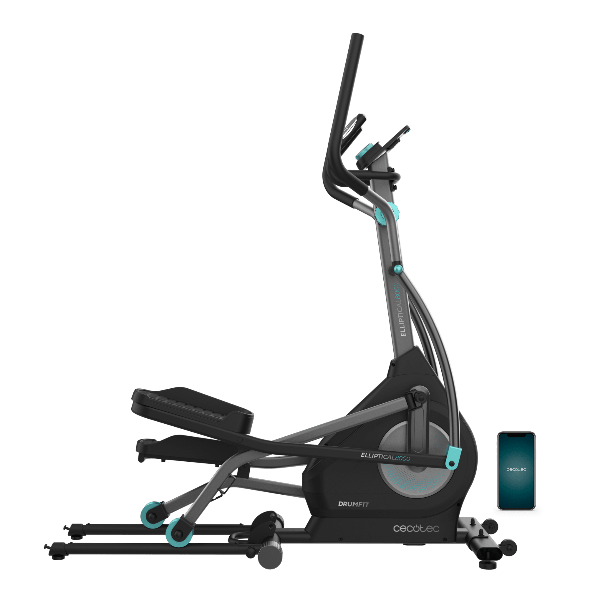 Bicicleta elíptica de resistencia magnética regulable a motor. Pantalla LCD con soporte para dispositivos. Volante de inercia 8 kg. Pulsómetro. Zancada 40 cm.
