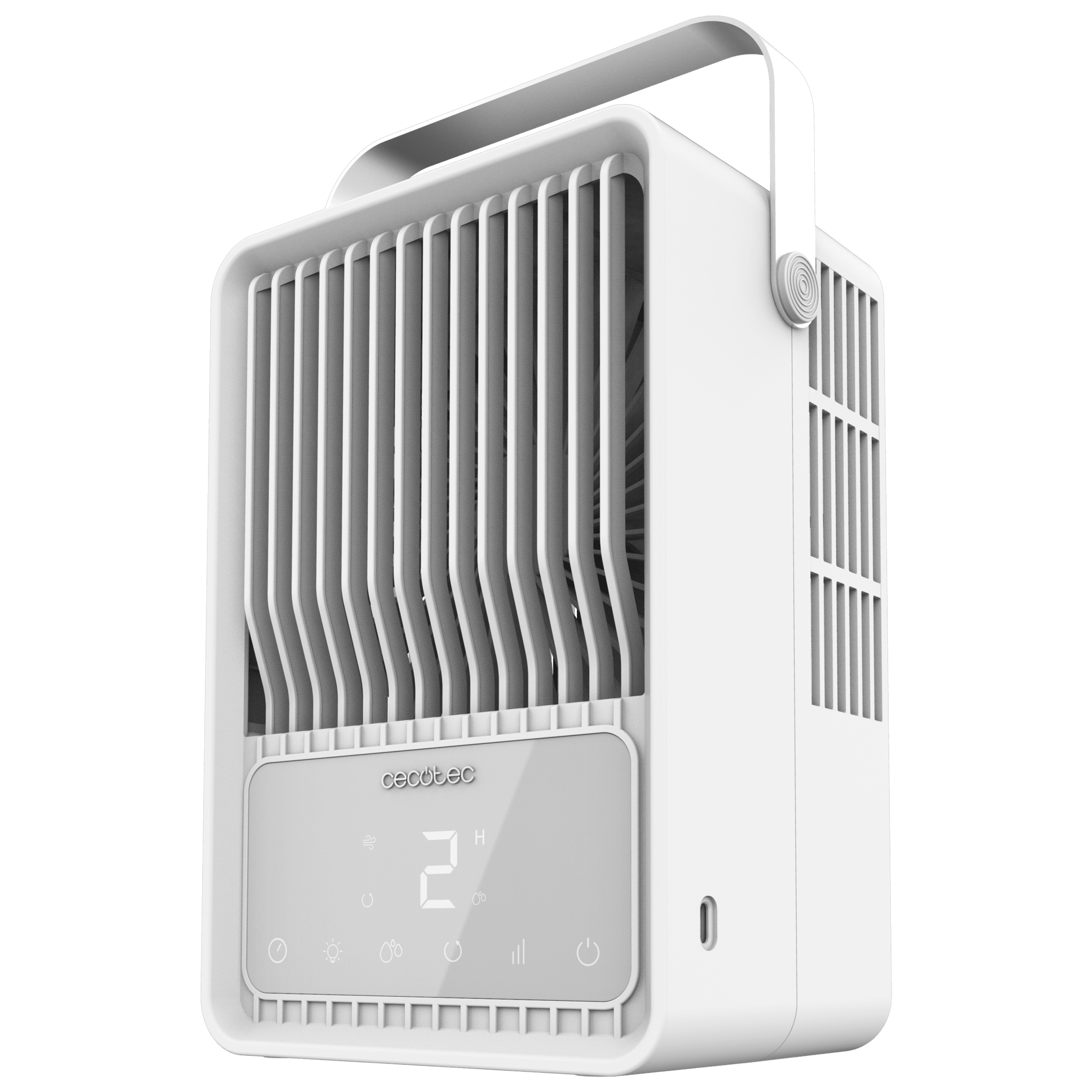 Climatizador de sobremesa de 500 ml, control táctil, display digital y temporizador.