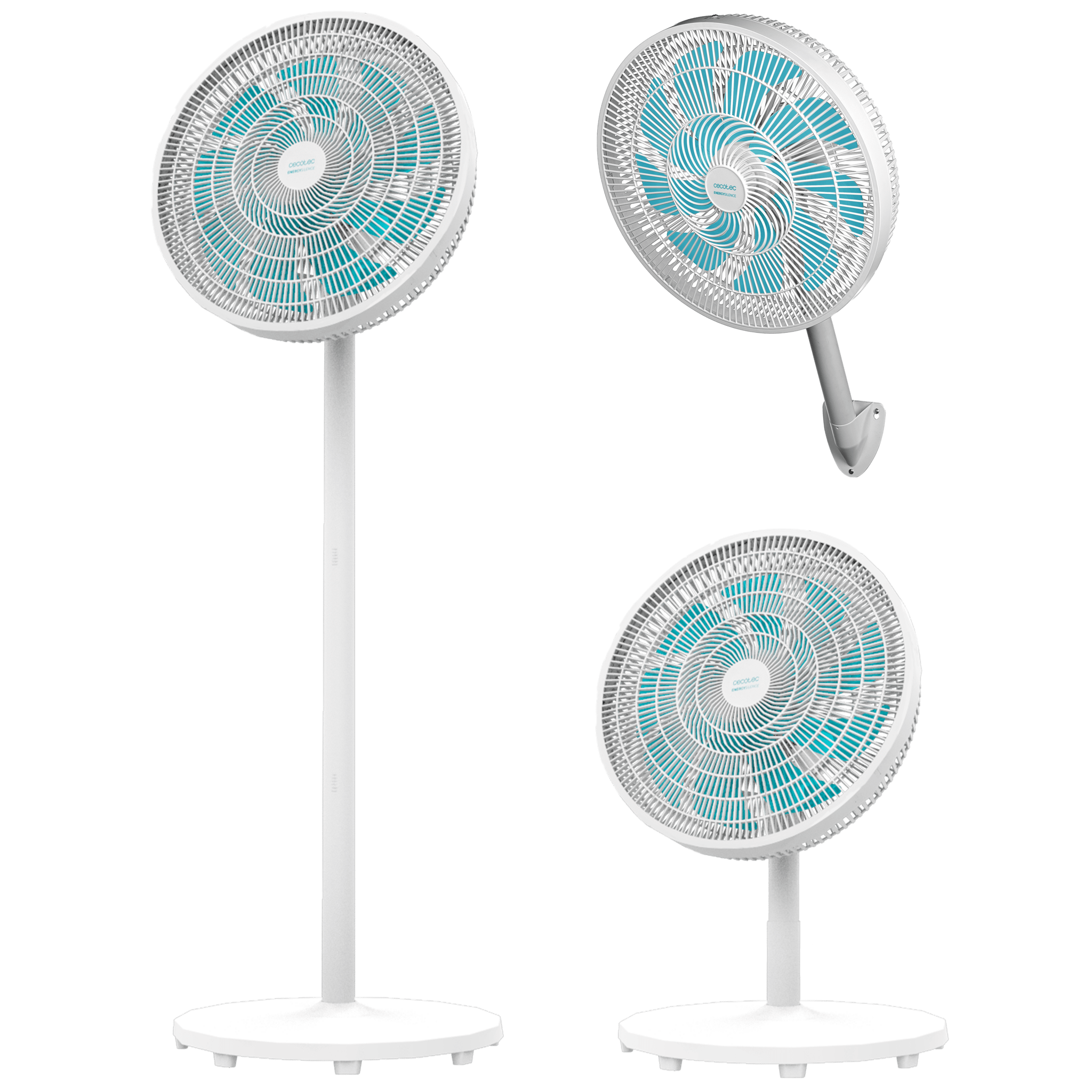 Ventilador de pie multiposición con 3 alturas: pie, sobremesa y pared, de 16″ con 60 W.