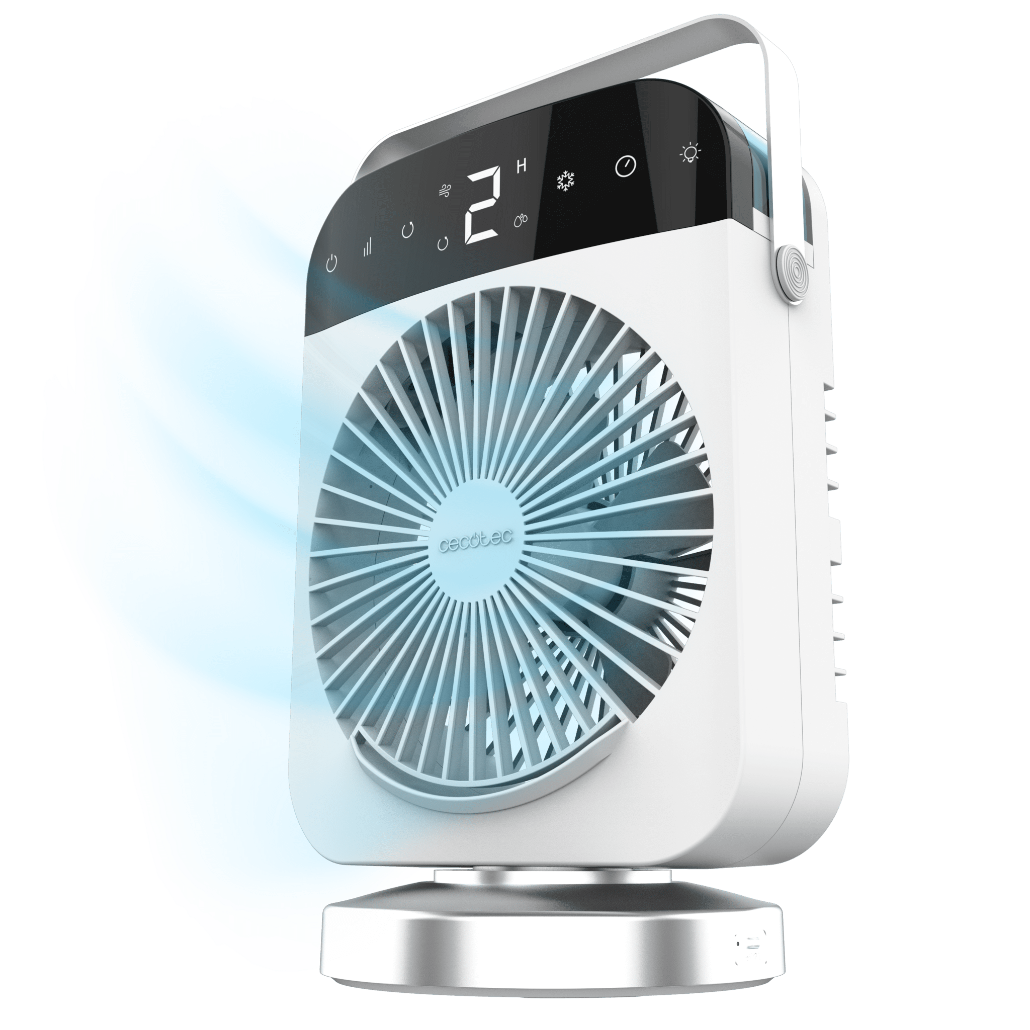 Climatizador de sobremesa de 300 ml, control táctil, display digital, oscilación y temporizador.