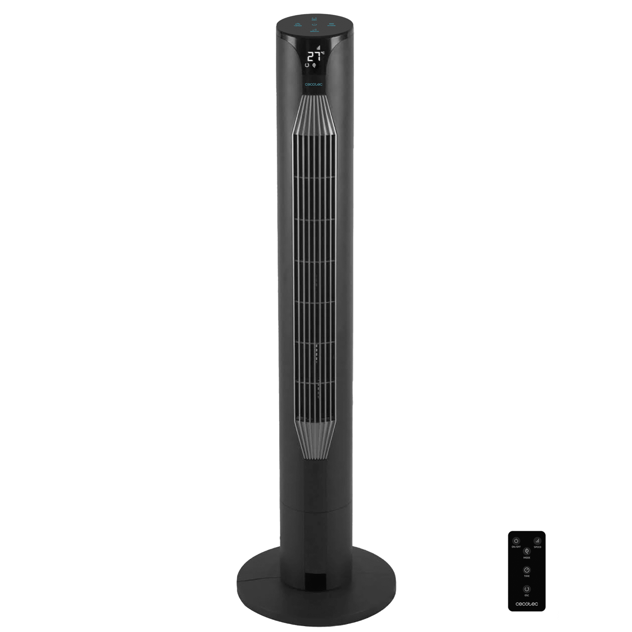 Ventilador de torre de 55 W y 42” con mando a distancia, pantalla LED, 3 velocidades, 3 modos, oscilación y temporizador.
