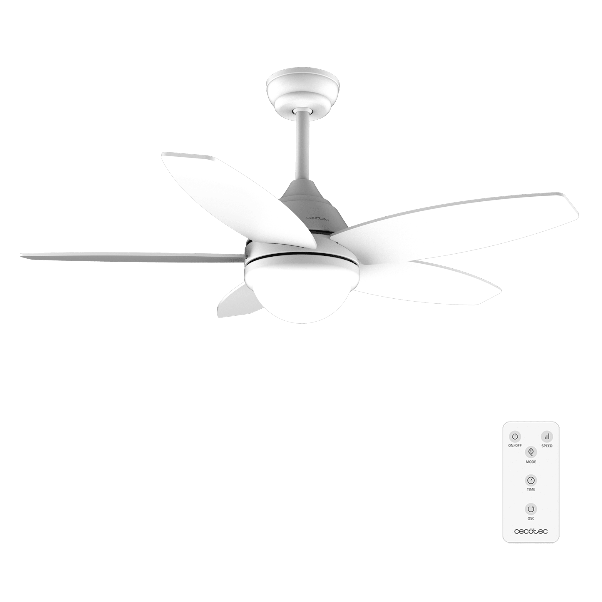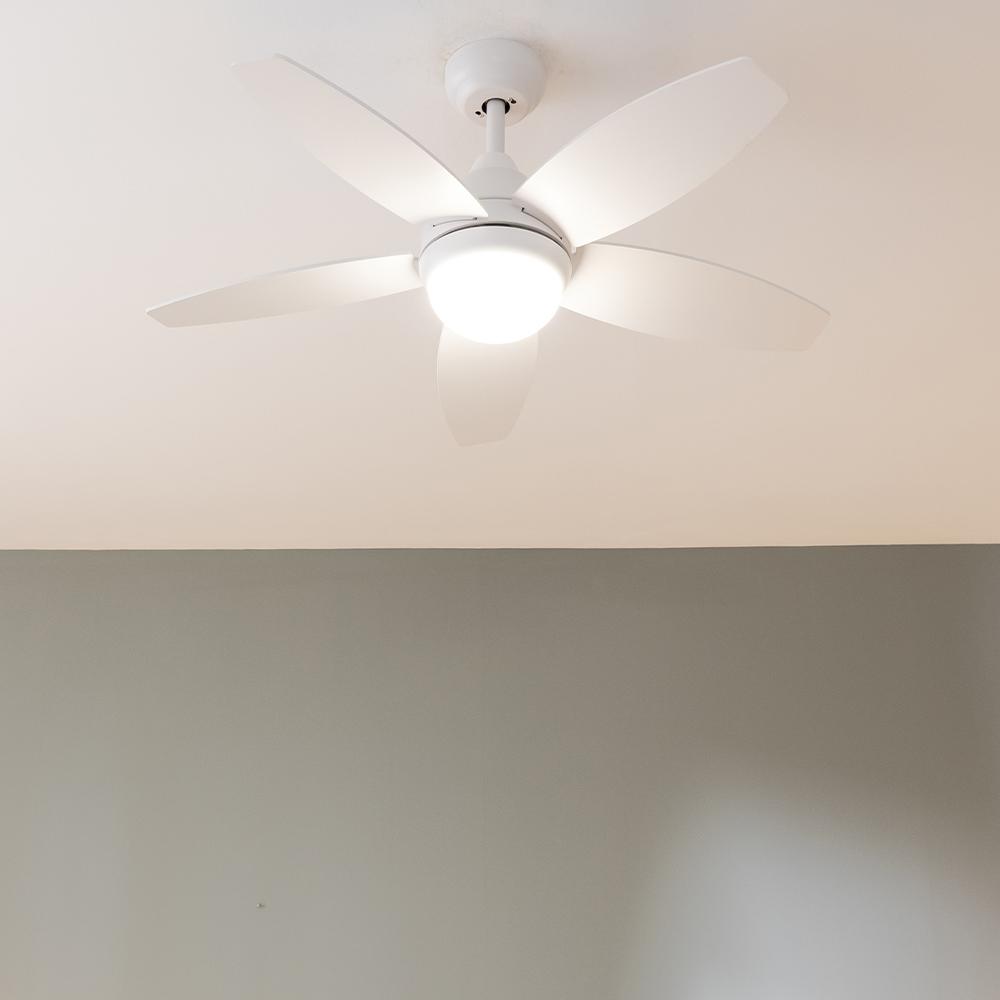 Ventilador de techo de 53W y 42” con luz LED de 15W, 3 tonalidades seleccionables, mando a distancia , temporizador seleccionable, 3 velocidades y 5 aspas.