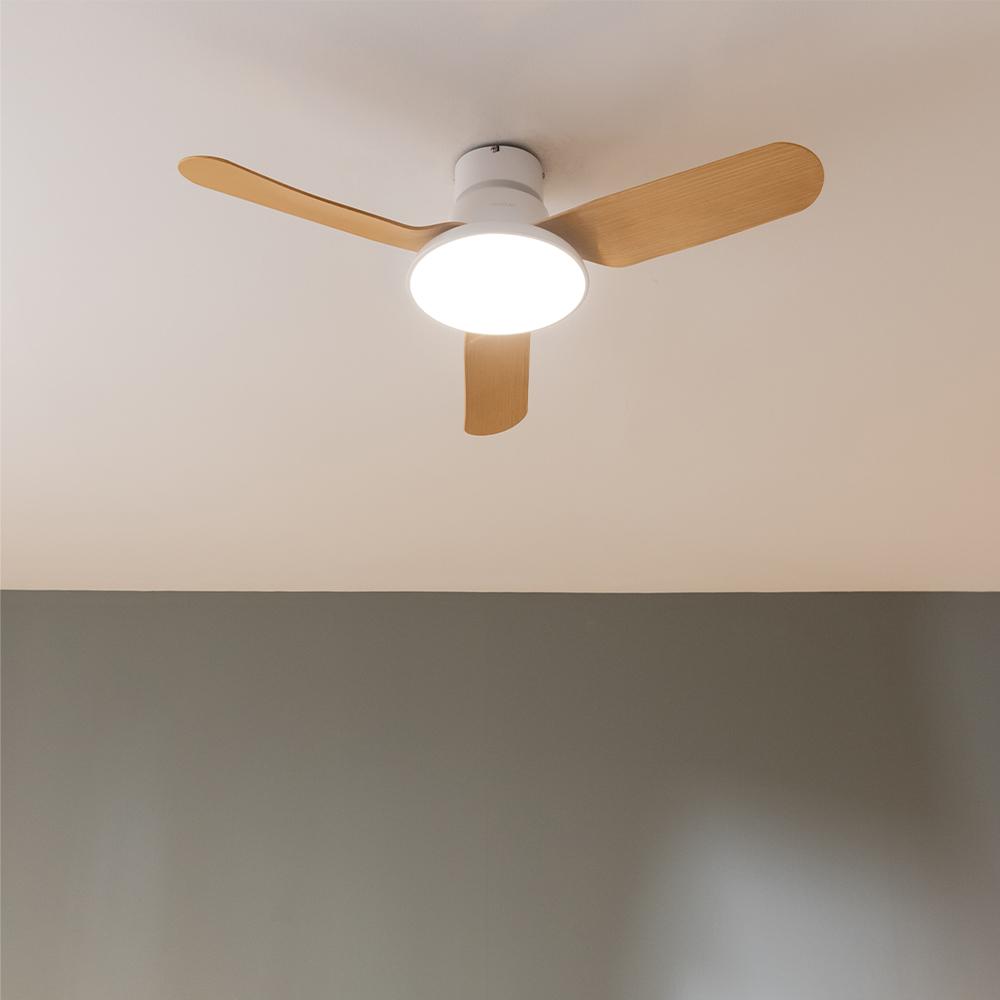 entilador de techo con motor DC de 40W, 43″, luz LED de 24W, 3 tonalidades, 3 aspas, temporizador programable programable, modo winter/summer, 6 velocidades.