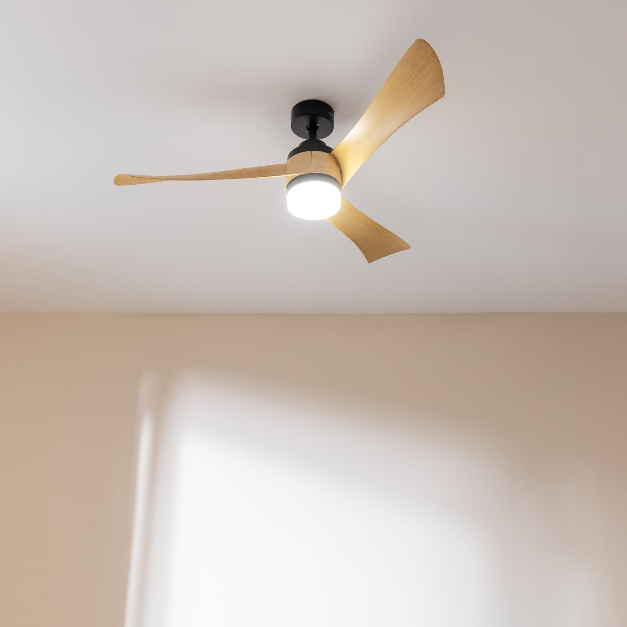Ventilador de techo de 40 W y 52″ , con motor DC, mando a distancia, luz LED de 18W, temporizador programable, modo winter-summer.