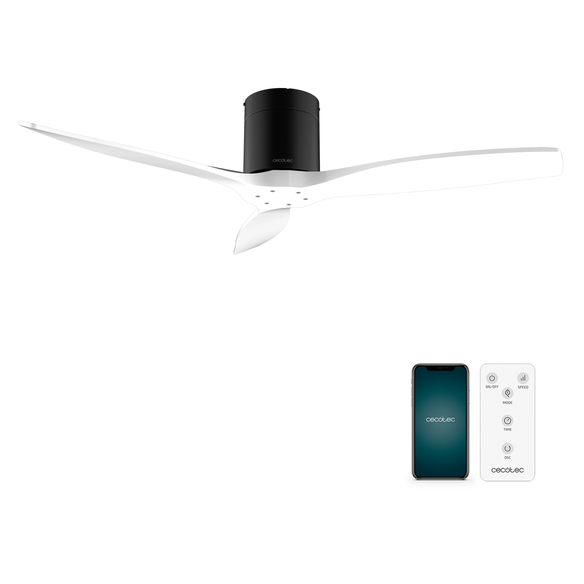 Ventilador de techo de 40 W y 52” con mando a distancia, control por wifi y mando a distancia, protección IP44, 6 velocidades, 3 aspas, modo winter-summer y temporizador de hasta 8 horas.