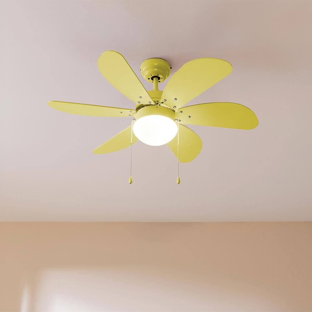 Ventilador de techo de 50 W y 36” con lámpara, 3 velocidades, 6 aspas reversibles, modo winter-summer y uso sencillo.