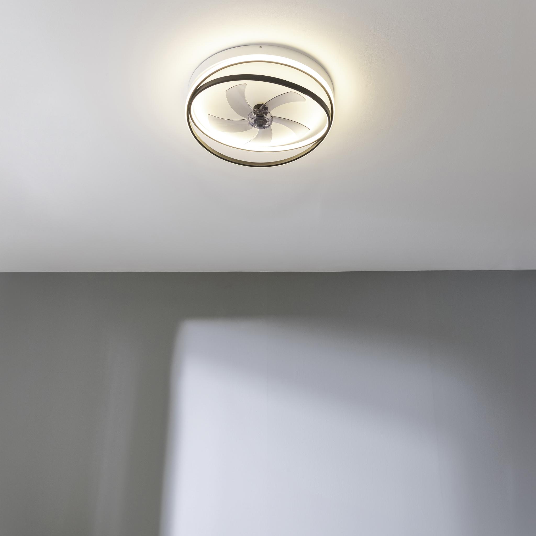 Ventilador de techo de diseño con motor DC , con una potencia de 15W y luz LED de 40W , con 5 aspas de 17 pulgadas , control remoto, 3 velocidades, 3 tonalidades de luz disponibles, temporizador y modo winter/summer.