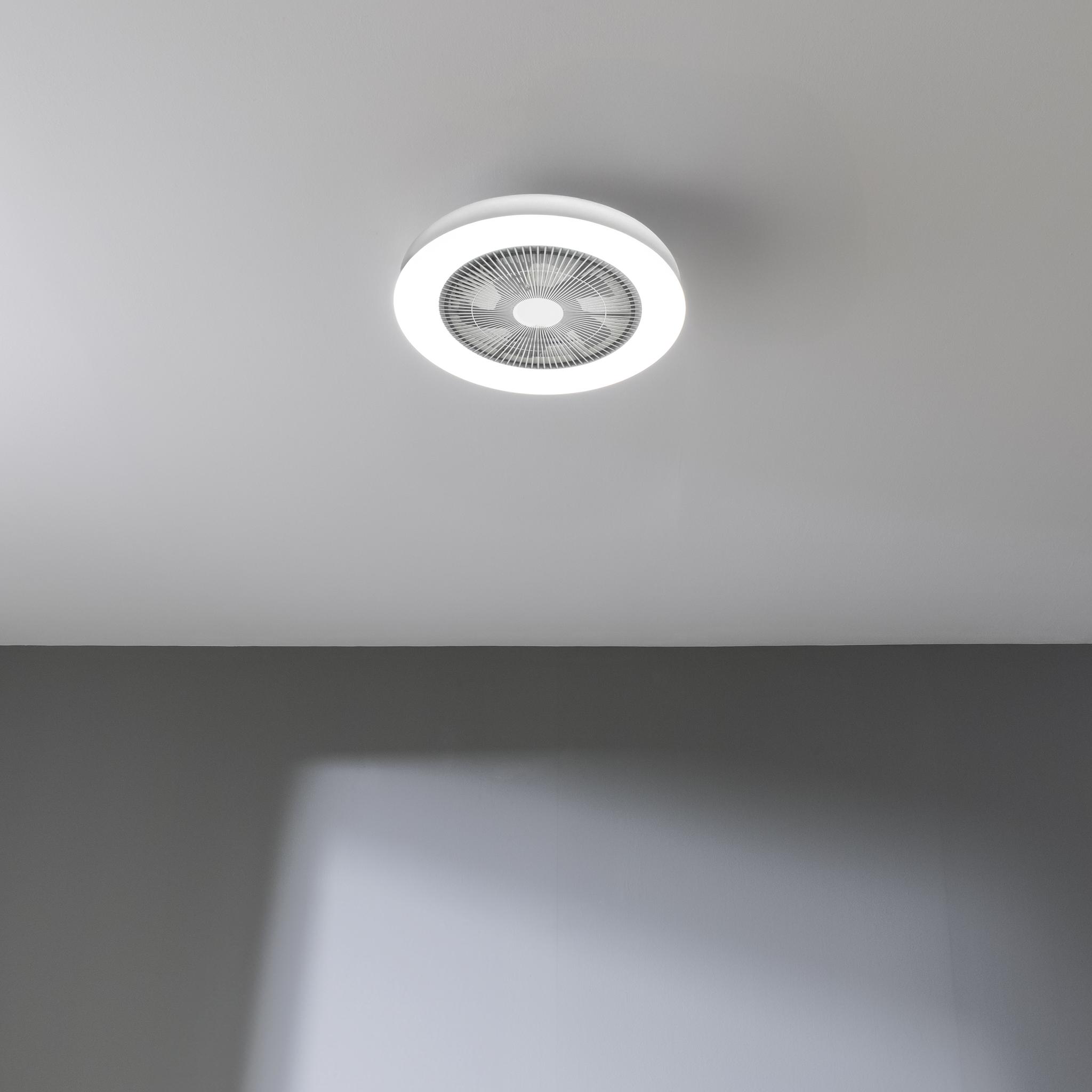 Ventilador de techo de diseño con motor DC , con una potencia de 20W y luz LED de 40W , con 5 aspas de 11 pulgadas , control remoto, 3 velocidades, 3 tonalidades de luz disponibles, temporizador y modo winter/summer.