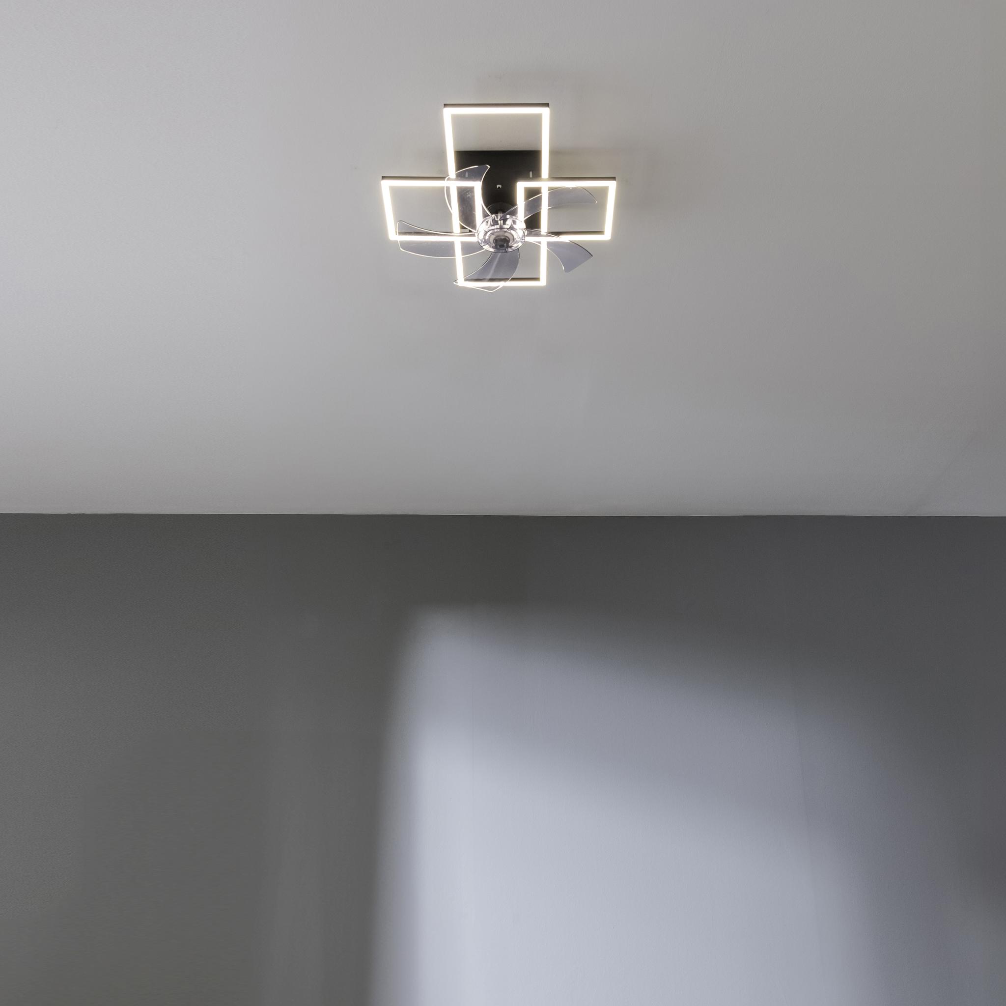 Ventilador de techo de diseño con motor DC , con una potencia de 15W y luz LED de 40W , con 5 aspas de 17 pulgadas , control remoto, 3 velocidades, 3 tonalidades de luz disponibles, temporizador y modo winter/summer.
