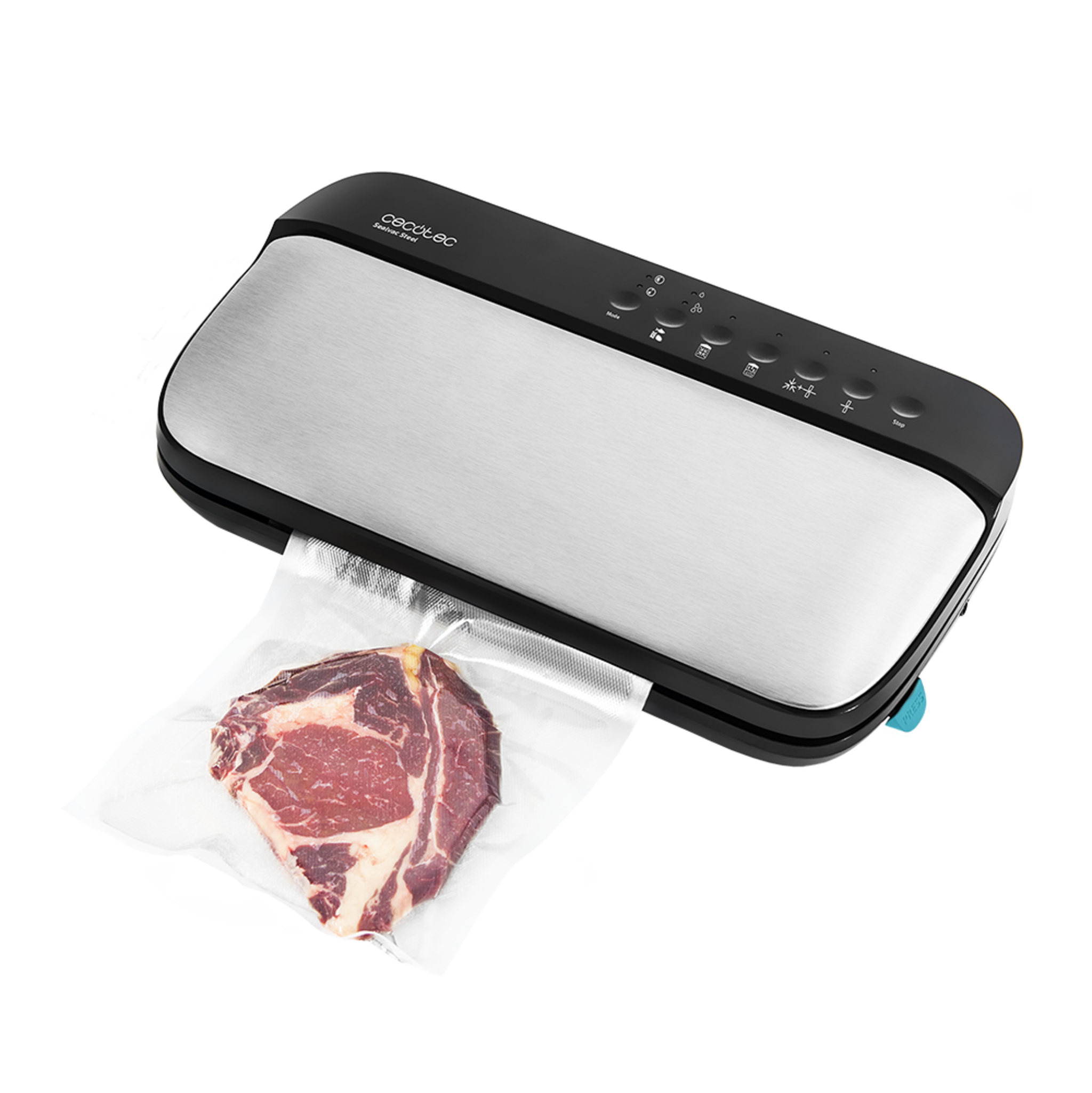 Envasadora al Vacío Sealvac Steel. 120 W, Presión de 0,9 Bar, 4 Modos de Funcionamiento, Compatible con Bolsas Genéricas, Incluye 5 Bolsas, Toma y Tubo para botes y Rollo gofrado
