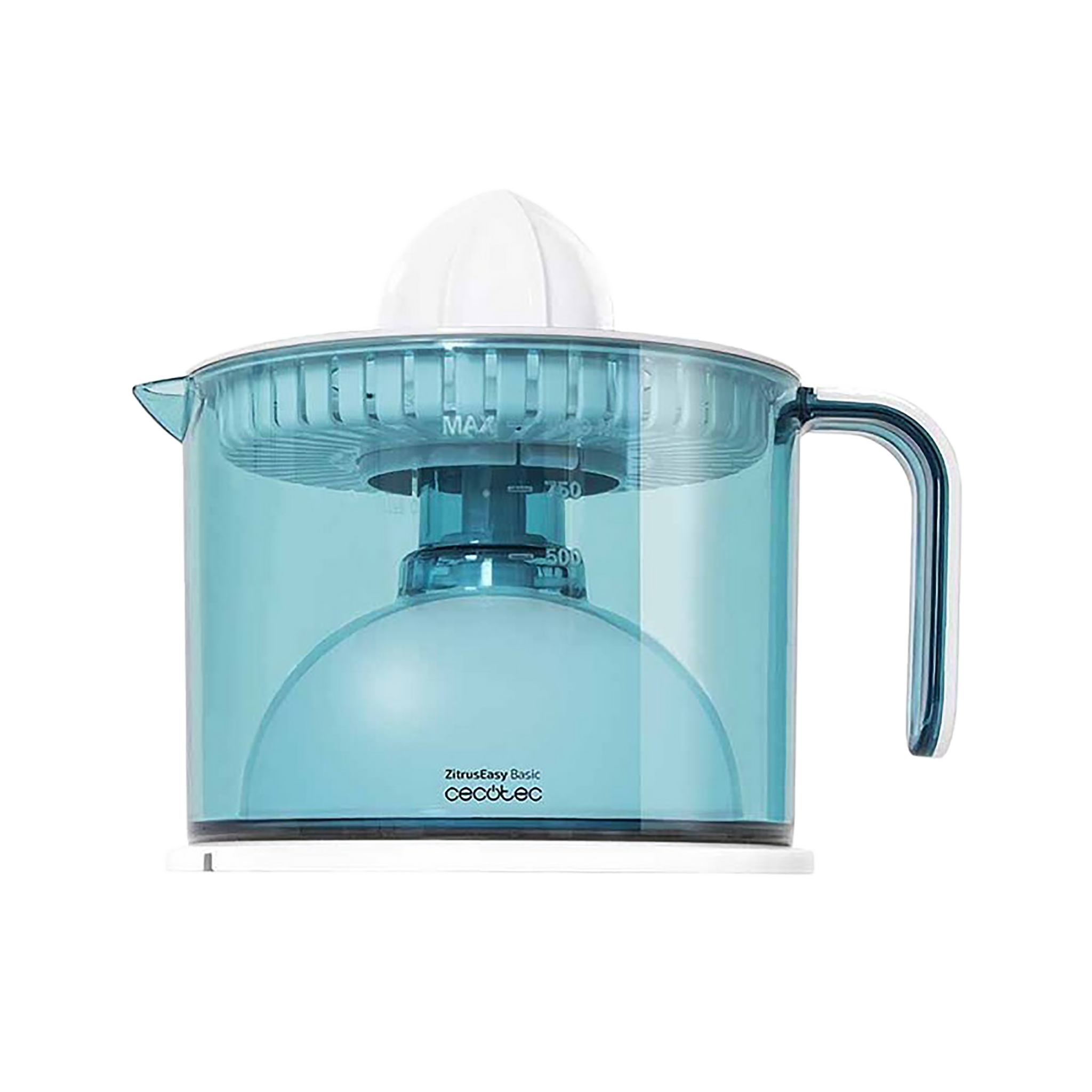 Exprimidor Naranjas Eléctrico ZitrusEasy Basic. 40 W, Tambor de 1 litro BPA Free, Doble sentido de giro, Doble cono, Cubierta antipolvo, Color azul/blanco