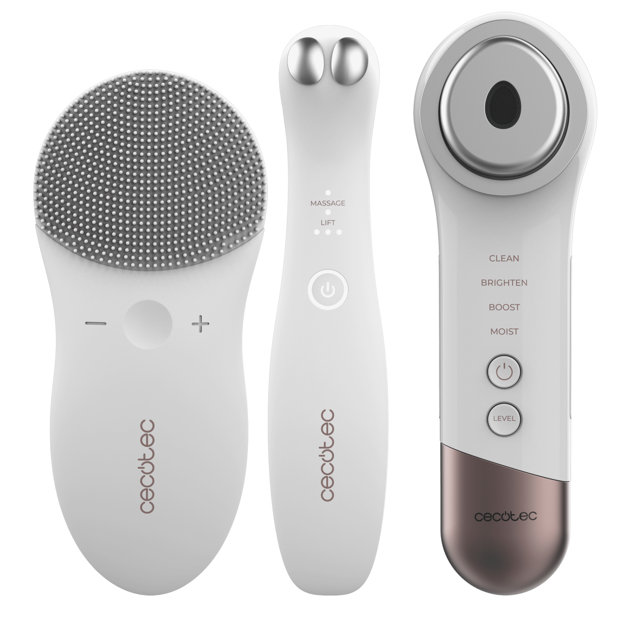 FaceCare SkinRoutine SkinRoutine que incluye un limpiador facial, un dispositivo antiojeras y un masajeador facial, además de incluir un kit de diadema y muñequeras