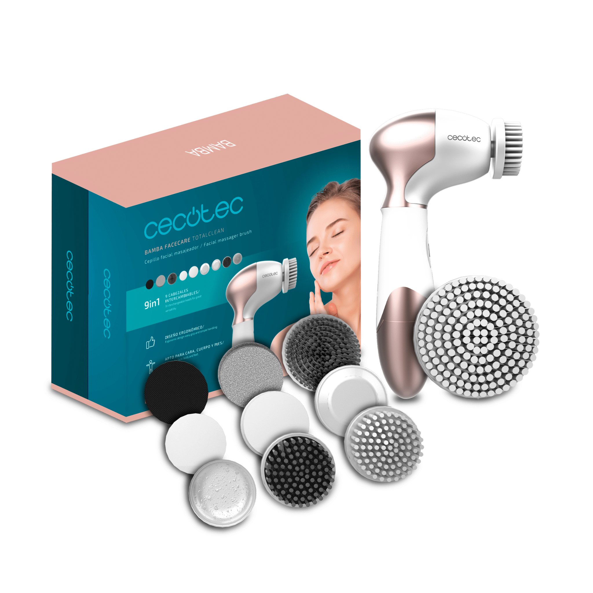 Cepillo facial con 9 cabezales para cara, cuerpo y pies con giro de 360º, un diseño ergonómico y con bolsa de viaje.