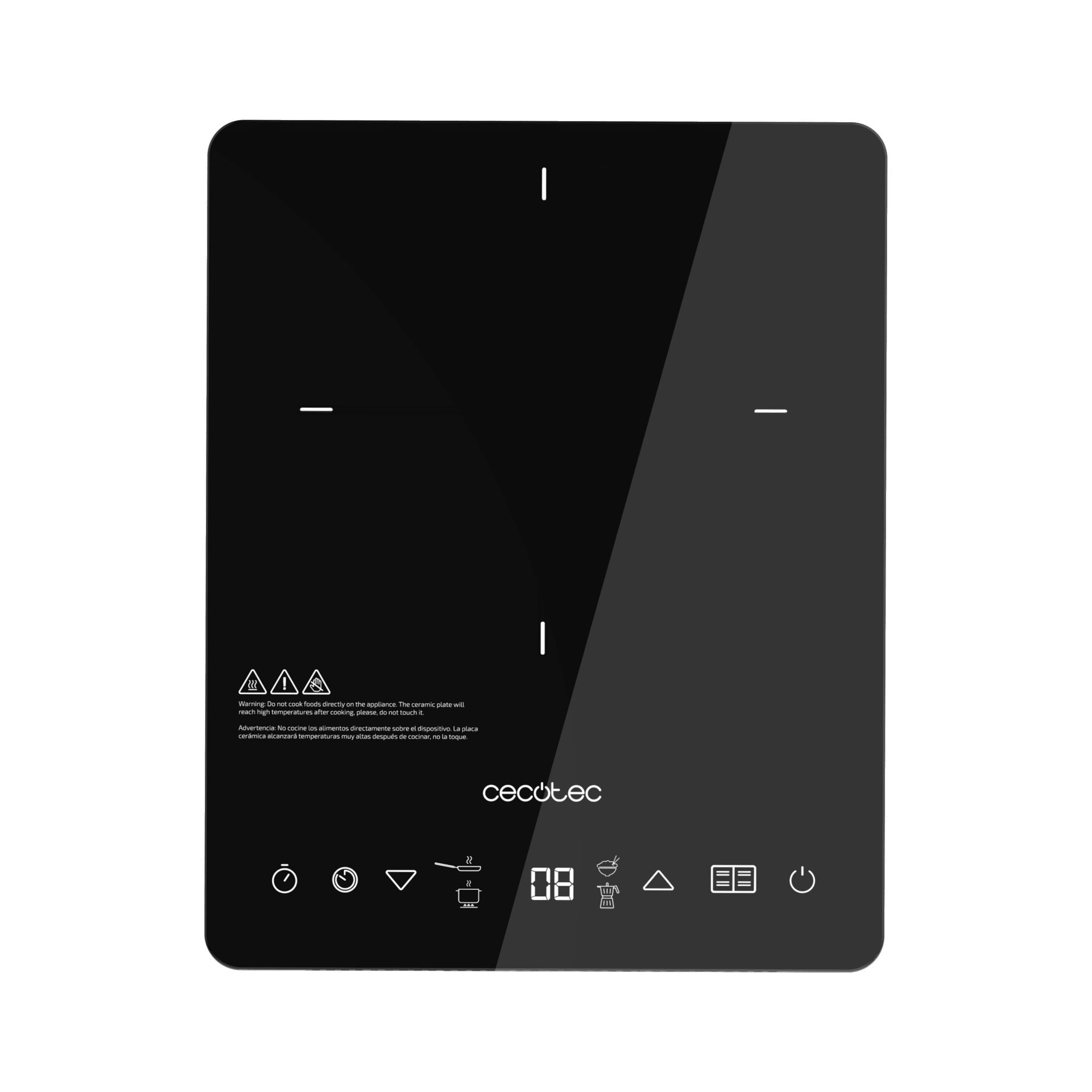 Placa de Inducción Portátil Full Crystal Onyx. 2000 W, Cristal Esmaltado, Control Táctil, Potencia y Temperatura Regulable, 4 Programas Preconfigurados, Temporizador, Diámetro 28 cm