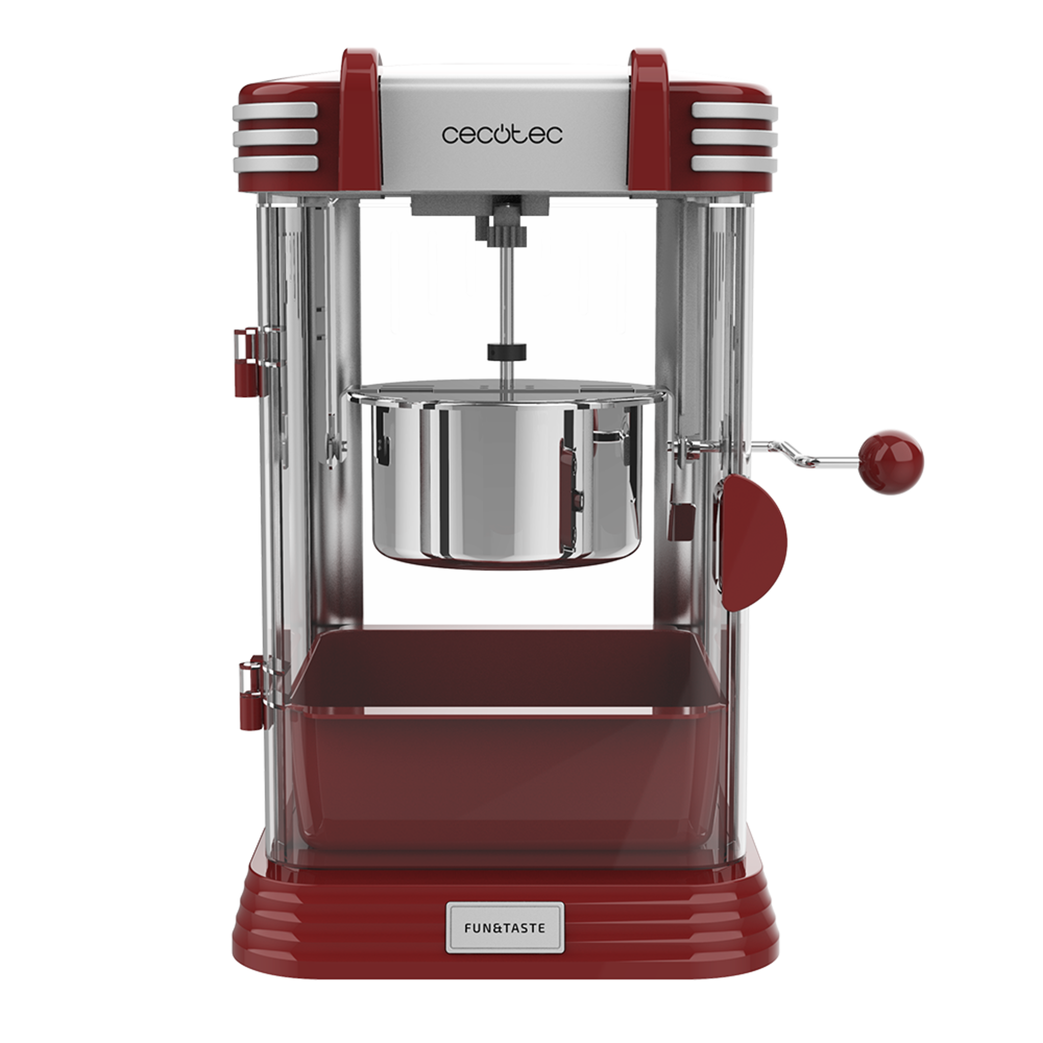 Palomitero Eléctrico Fun&Taste P´Corn Classic. 300 W, Diseño Retro, Olla de Acero Inoxidable de 500 ml, Bandeja extraíble, Potencia 300 W, Luz Interior, Cuchara dosificadora