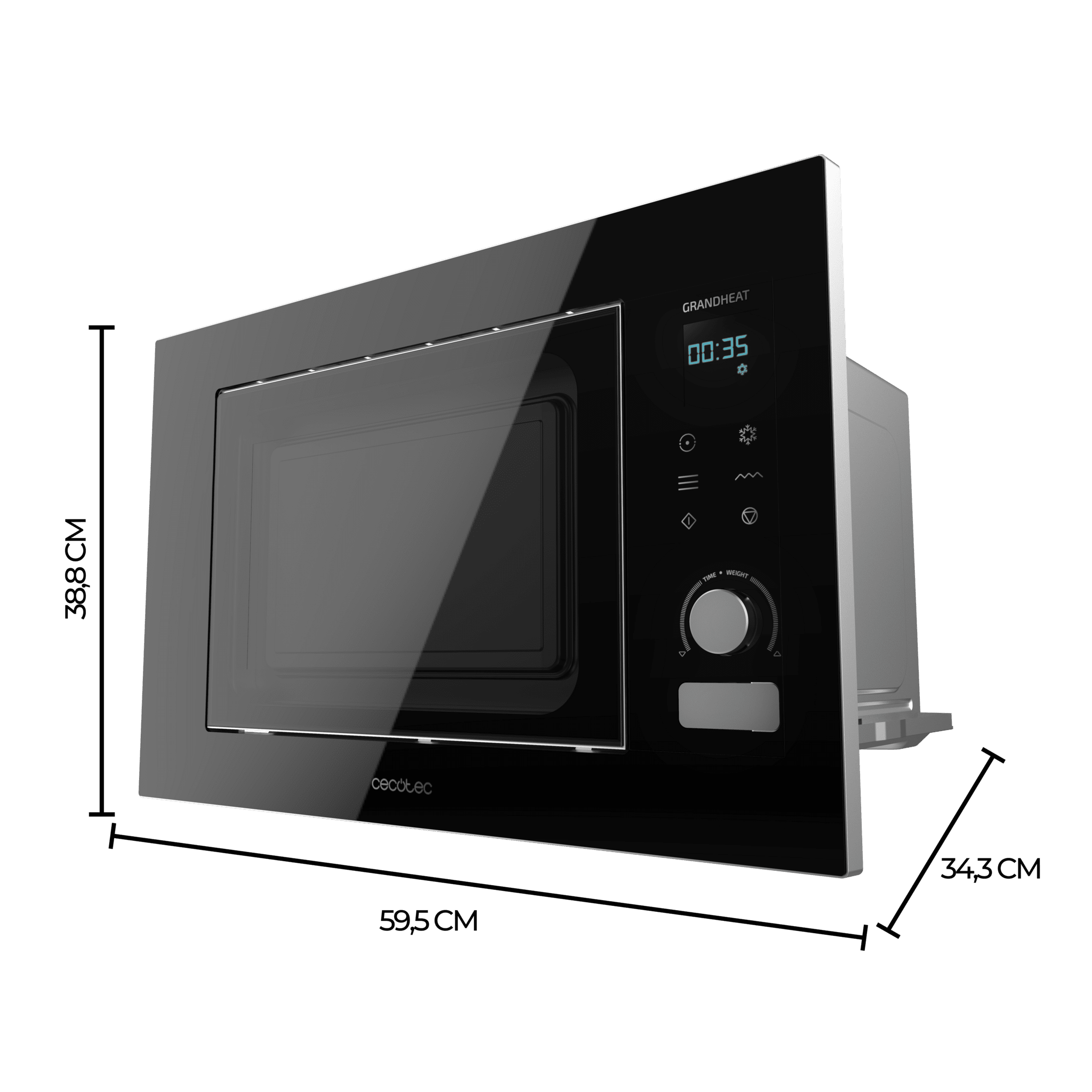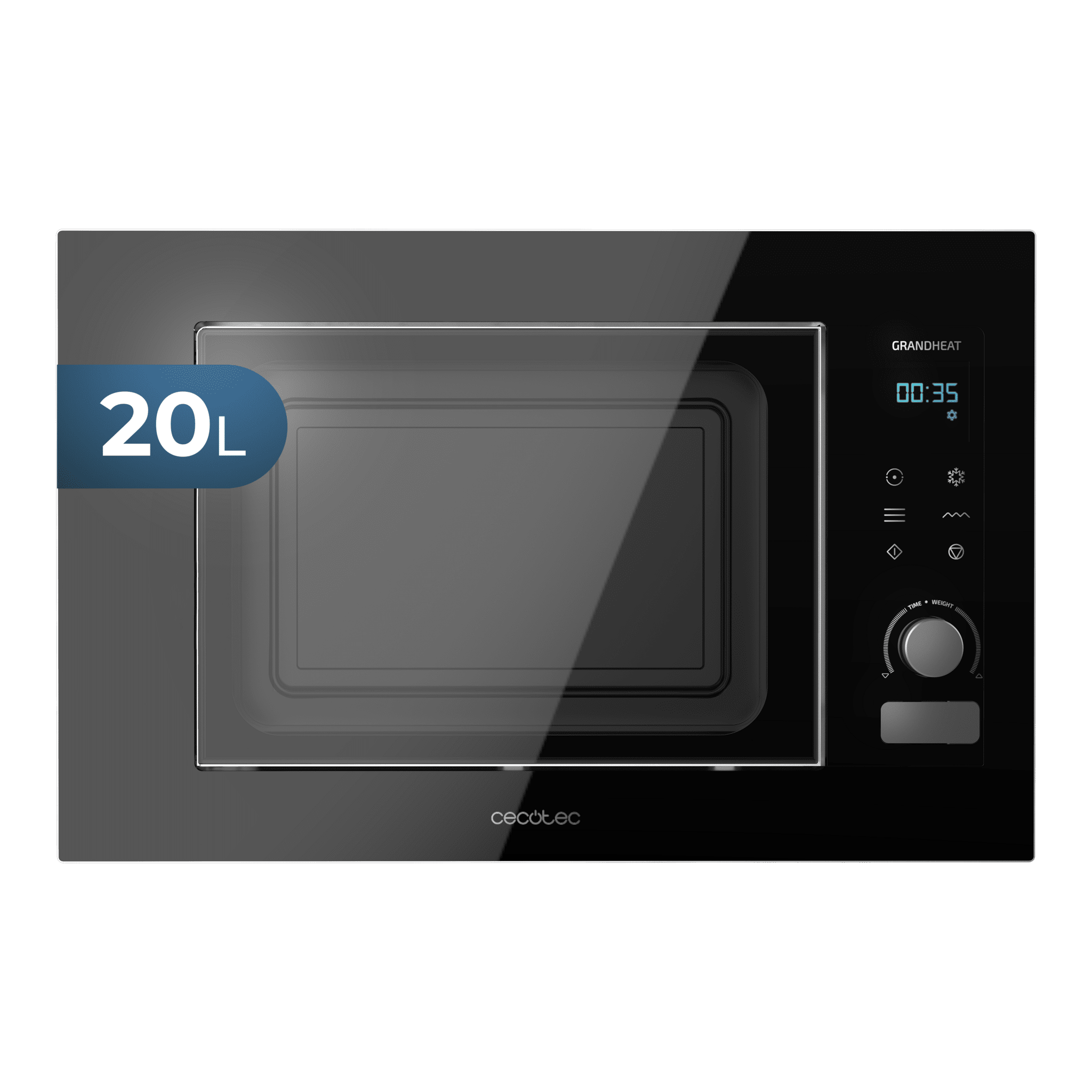 Microondas Encastrable Digital GrandHeat 2090 Built-in Touch Black. 800 W, Integrable, 20 Litros, 8 Funciones, Panel Táctil, Inicio Automático, Temporizador, Negro