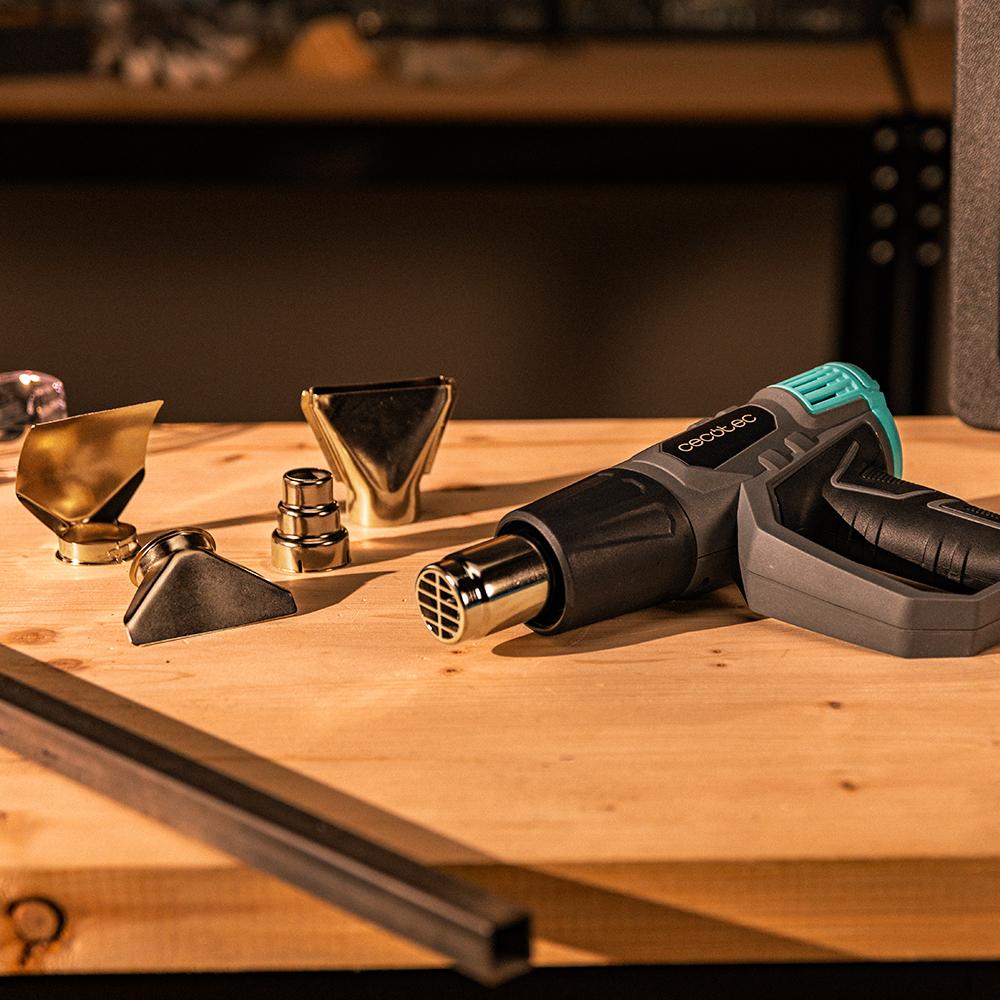 Pistola de calor con 2000W de potencia. Velocidad de aire regulable. Rango de temperatura de 50ºC a 550ºC. Incluye 4 cabezales intercambiables y maletín. Calentamiento ultrarrápido.
