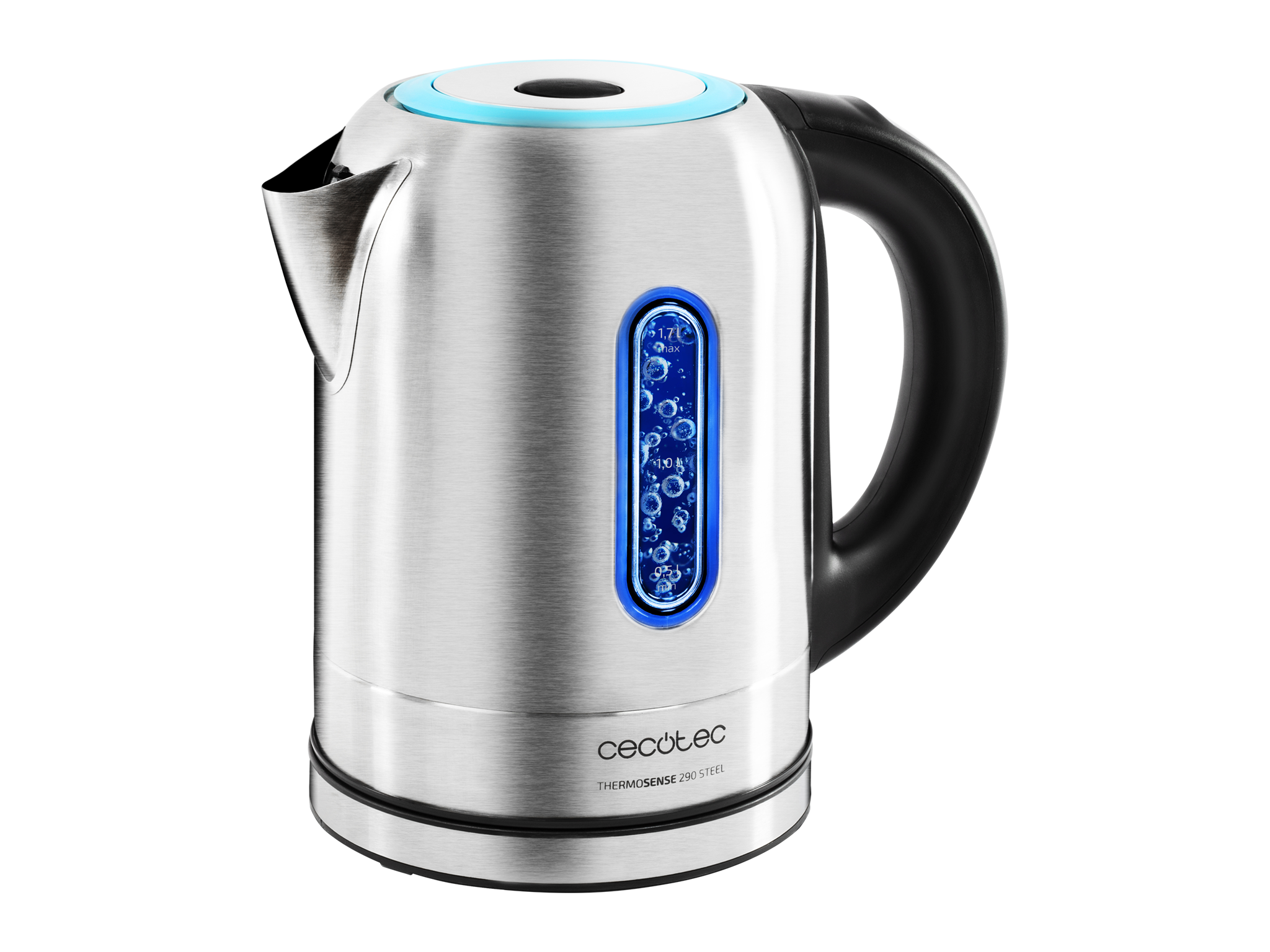 Hervidor de Agua Eléctrico ThermoSense 290 Steel. 1,7 litros, Libre de BPA, 2200 W de Potencia, Base 360º, Filtro Antical Desmontable, Doble Sistema de Seguridad, Acero Inoxidable