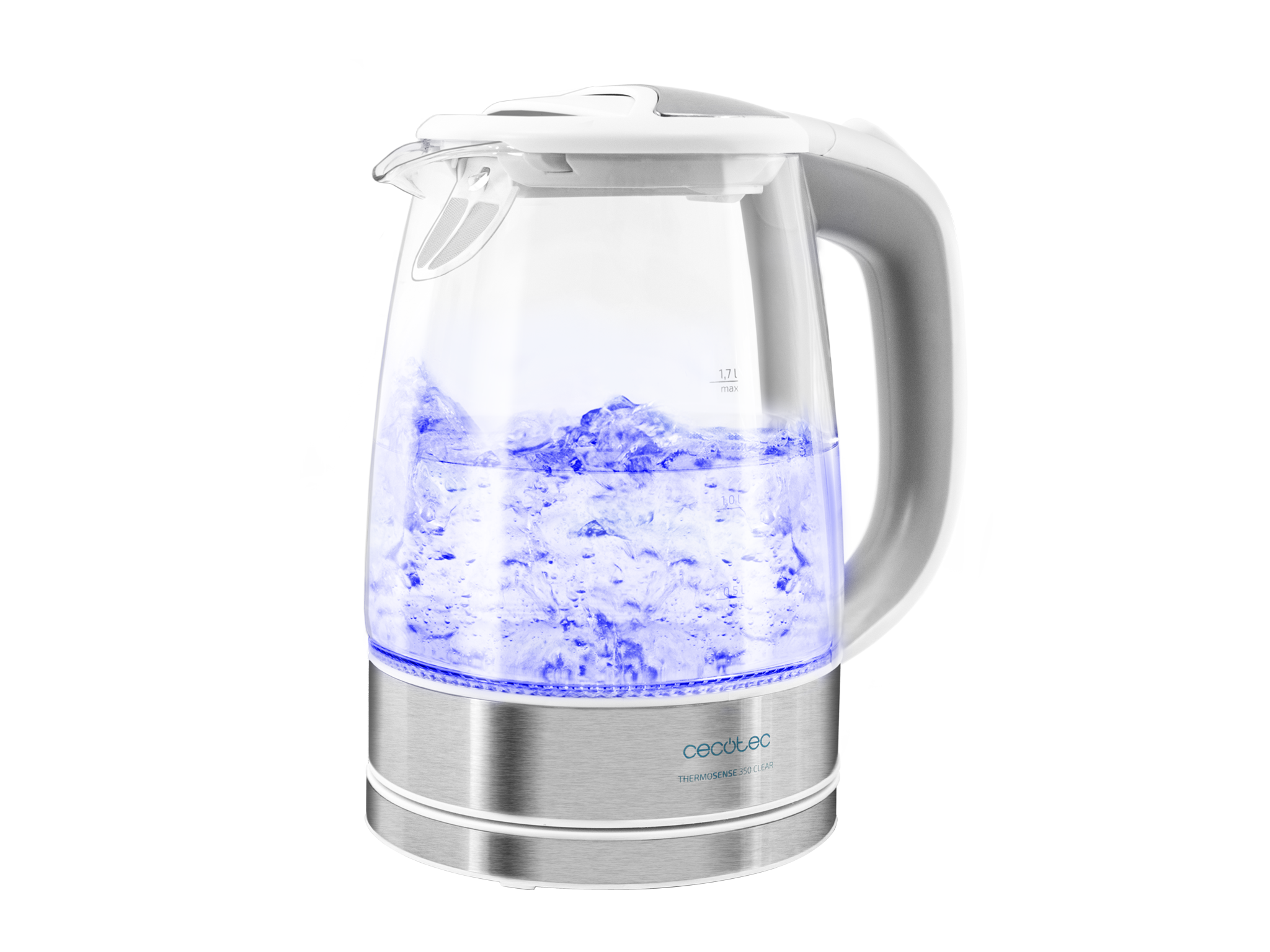 Hervidor de Agua Eléctrico ThermoSense 350 Clear. 1,7 litros, Libre de BPA, 2200 W de Potencia, Base 360º, Filtro Antical, Doble Sistema de Seguridad, Vidrio Borosilicato