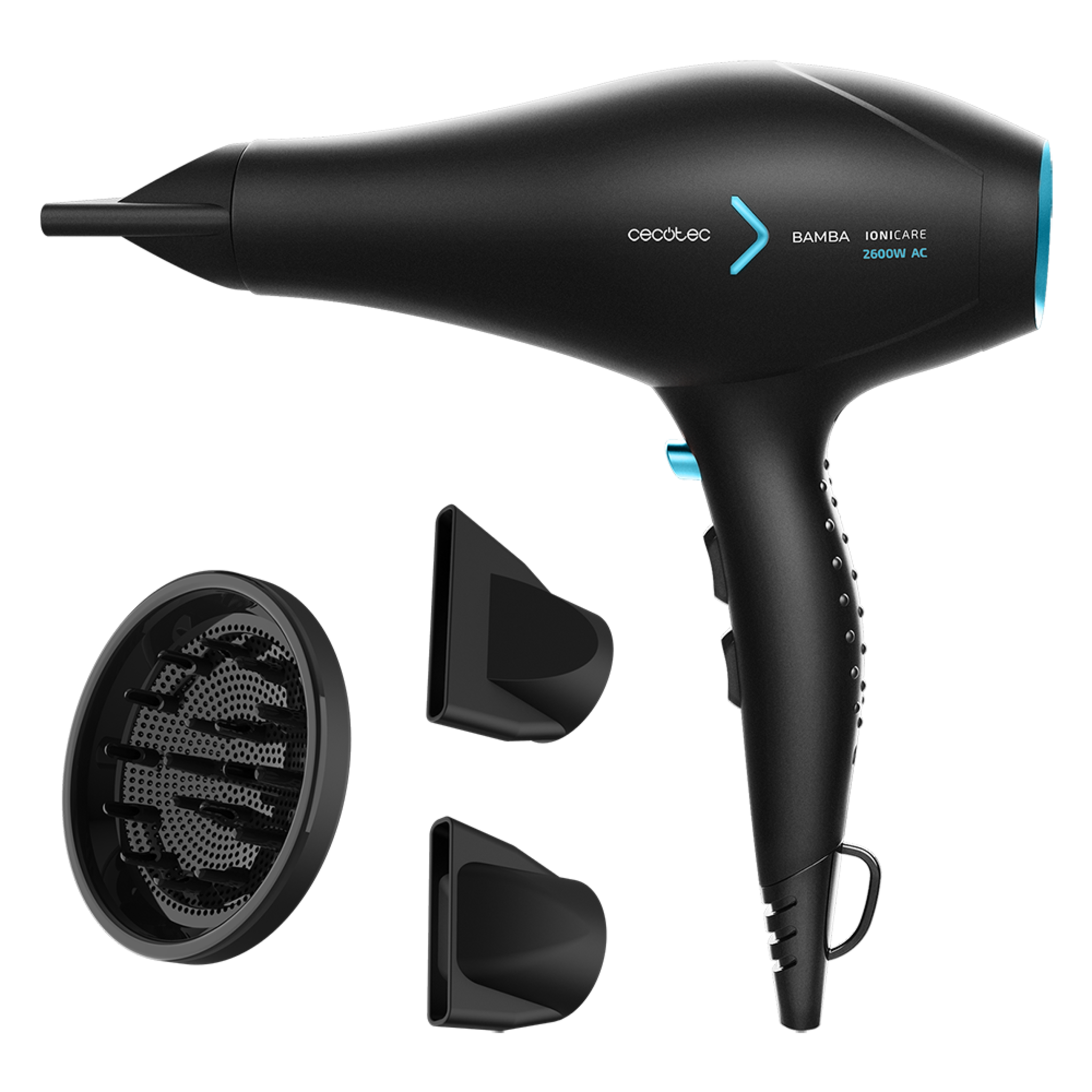 Secador de pelo iónico Bamba IoniCare 5350 Powershine Ice. 2600 W de potencia, con ion real,dos boquillas de precisión, difusor máximo volumen, ajuste de temperatura y velocidad