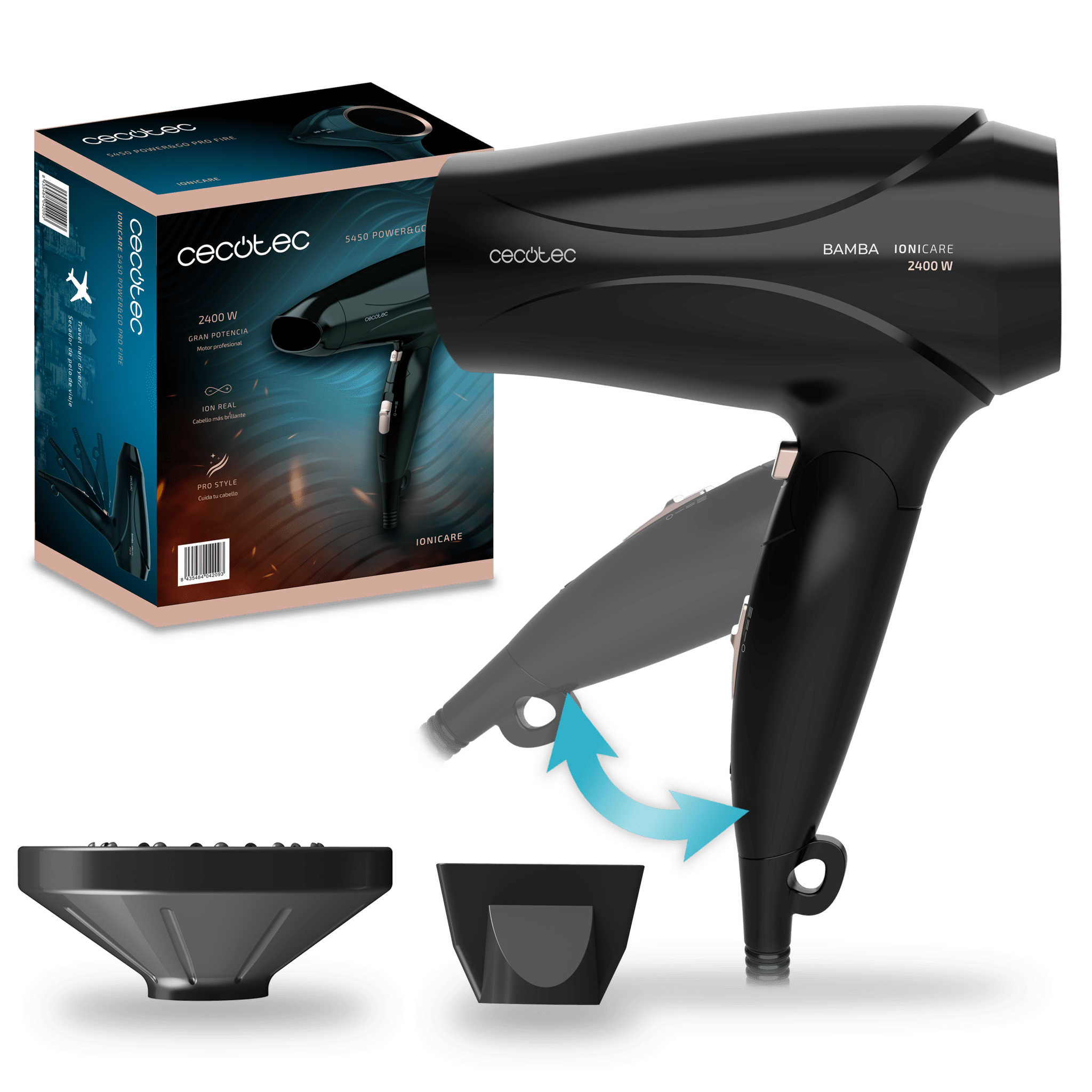 IoniCare 5450 Power&Go Pro Fire Secador de pelo con 2400 w de potencia, con difusor, ion real, gran caudal, función de aire frío (Bronce)