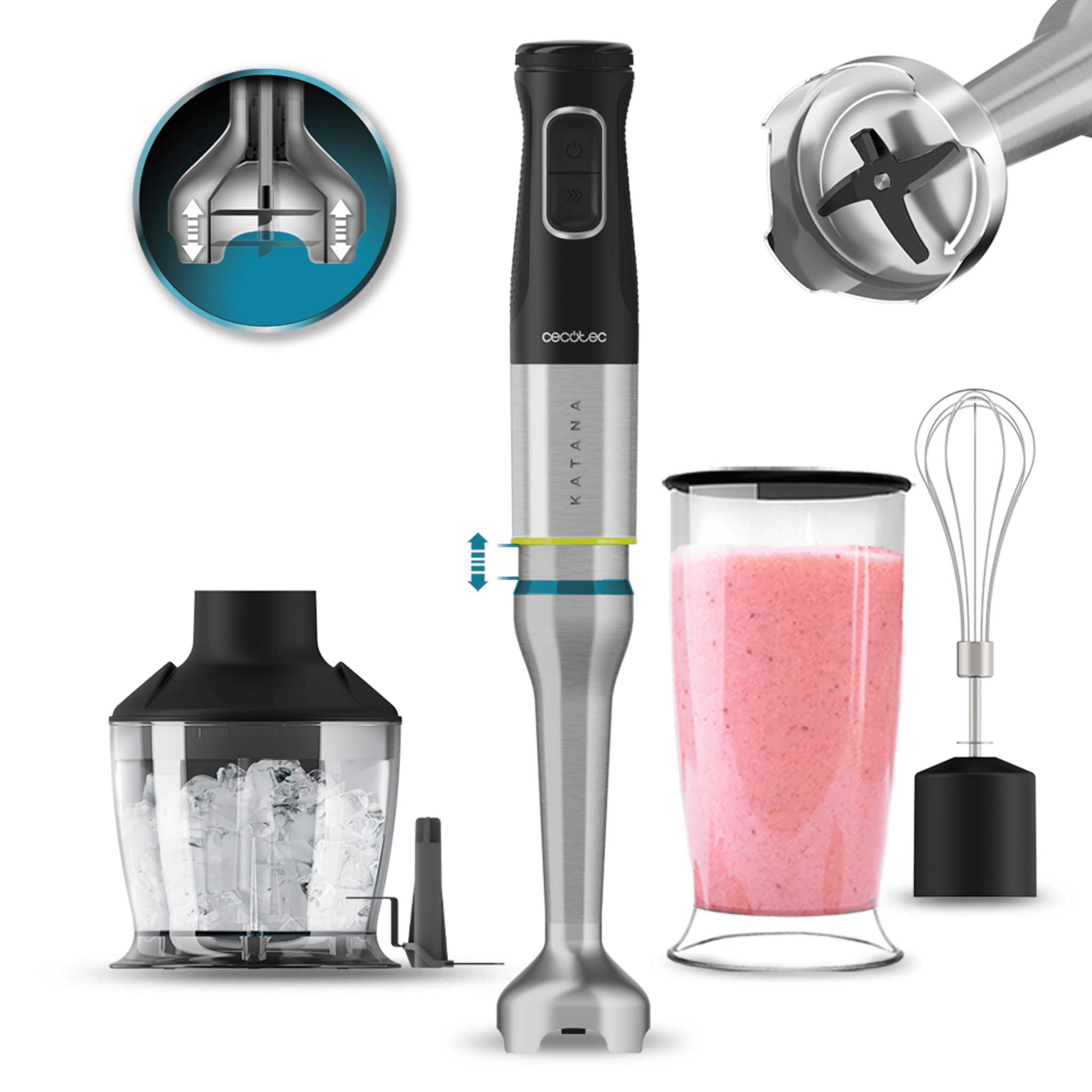 Batidora de mano de Potencia 1200 W, Pie XL, Campana antisalpicaduras, 21 niveles de Velocidad + Función Turbo, mango ergonómico, Perreo move y vaso medidor con tapa + varilla batidora + Picadora