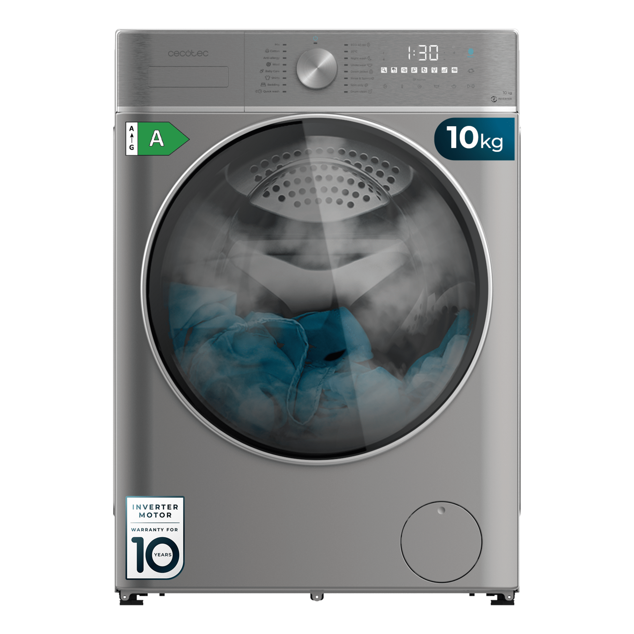 Lavadora de carga frontal de 10 kg de capacidad, Clase A, 1400 rpm, 16 programas, Motor Inverter Plus, SteamMax, lavado inteligente y detector de carga. Color Steel. Ancho 60 /Fondo 57,7 /Alto 84,7cm