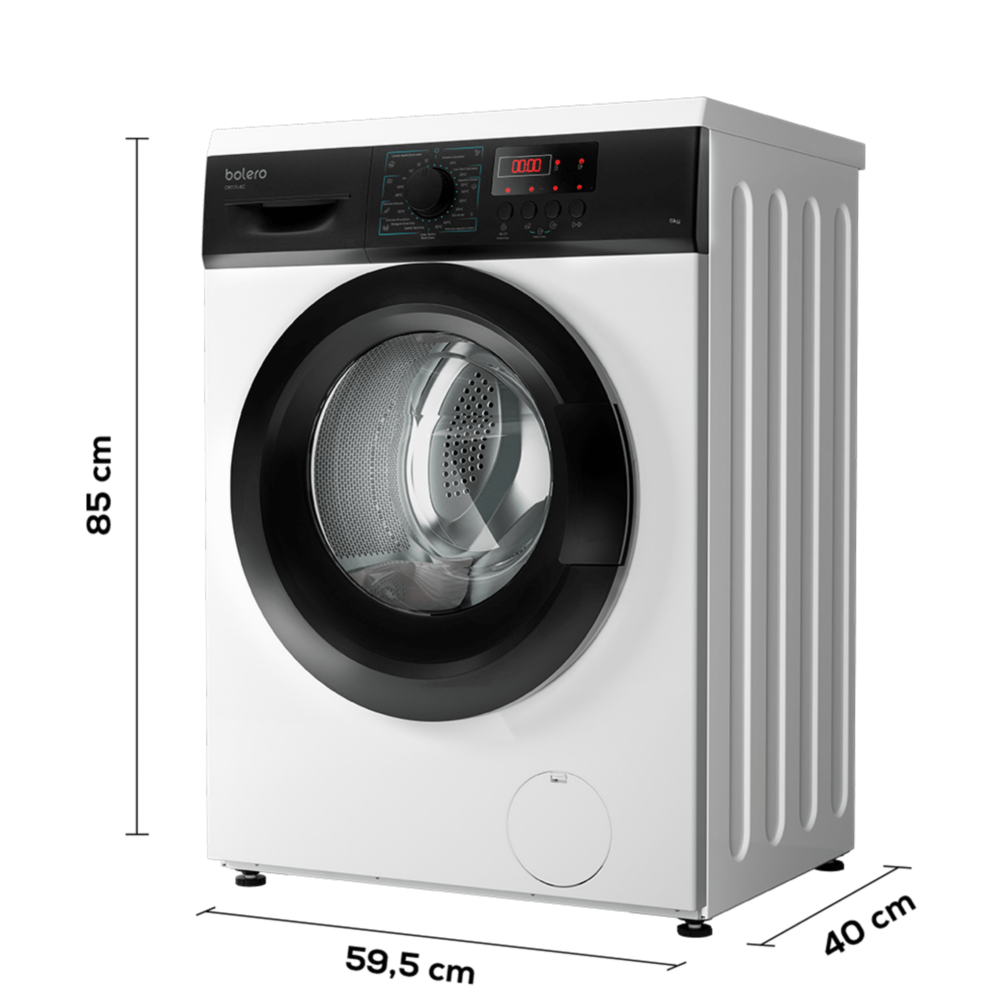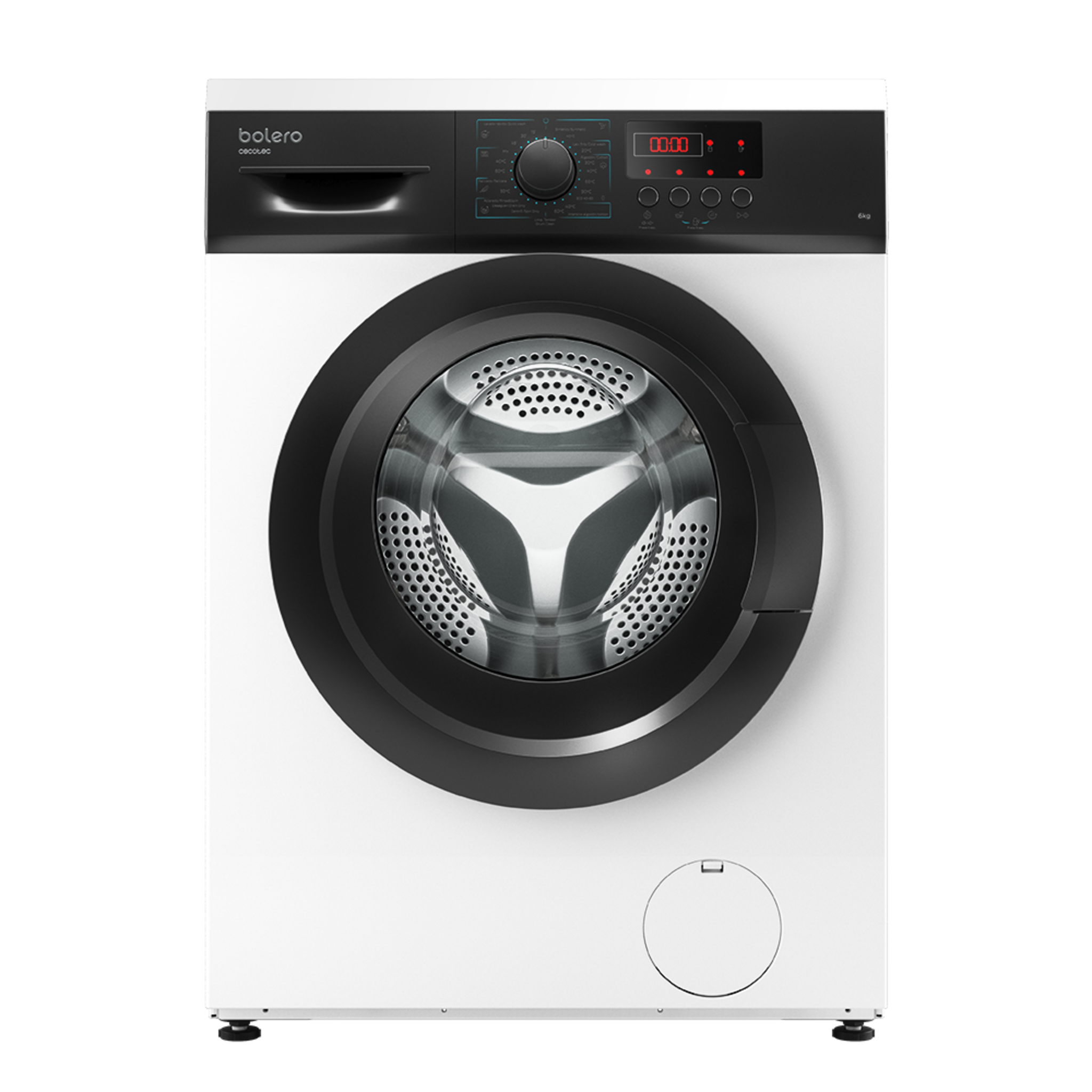 Lavadora carga frontal de 6 kg de capacidad y 1000 rpm, 8 programas y panel de control con display LED. Color blanco Clasifición energética E. Ancho 59,5 /Fondo 40 /Alto 85cm