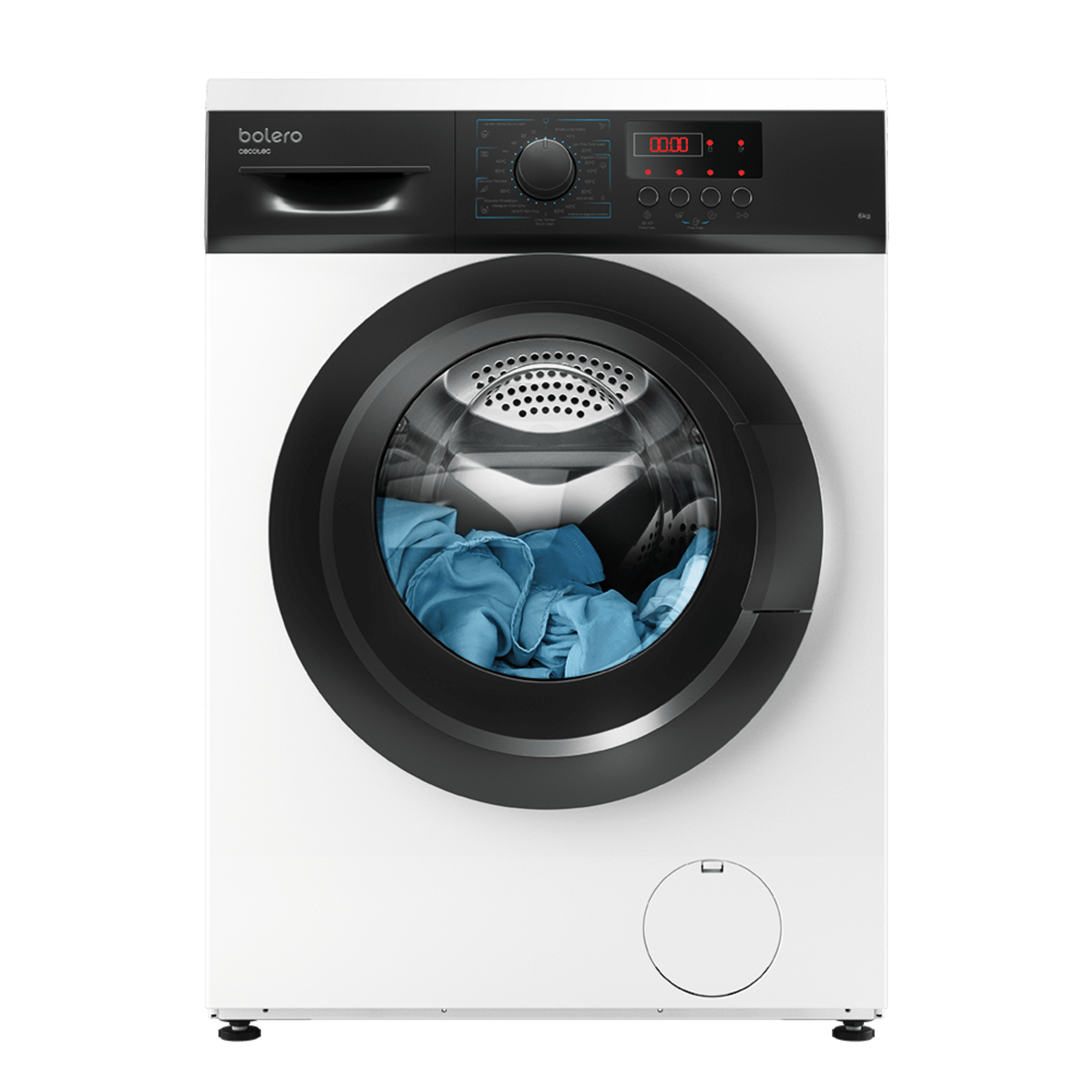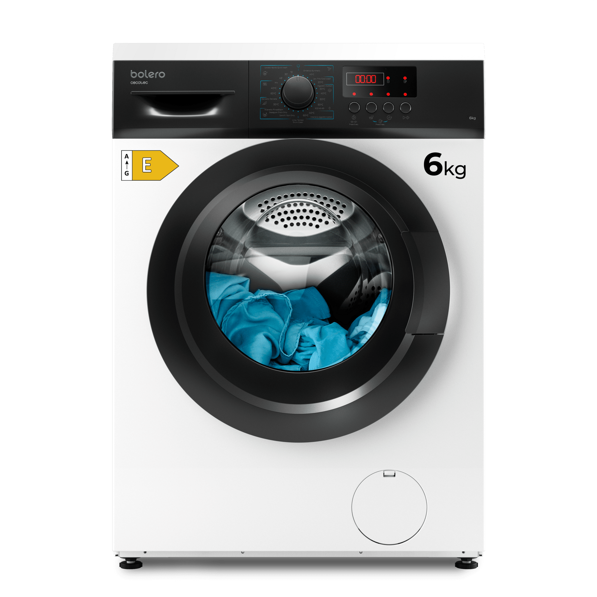 Lavadora carga frontal de 6 kg de capacidad y 1000 rpm, 8 programas y panel de control con display LED. Clasifición energética E. Ancho 59,5 /Fondo 40 /Alto 85cm