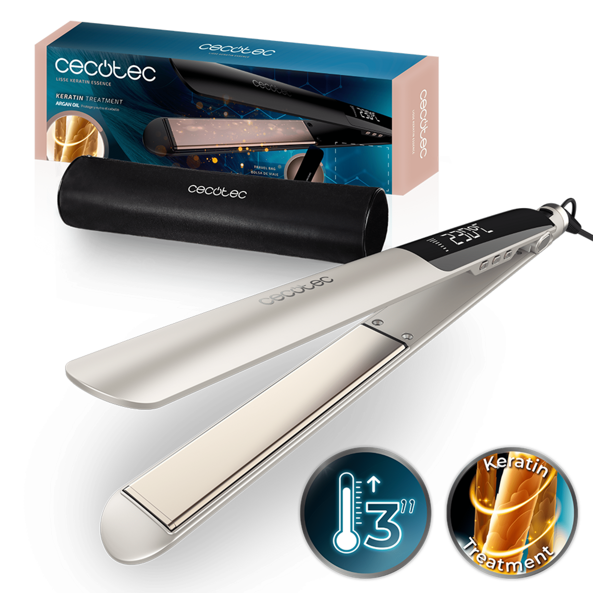 Plancha de Pelo Estrecha con Cable, Función HeatMax, 130-230ºC, Revestimiento Cerámico con Queratina y Aceite de Argán, Bloqueo de Placas, Apagado Automático, Incluye Bolsa de Viaje