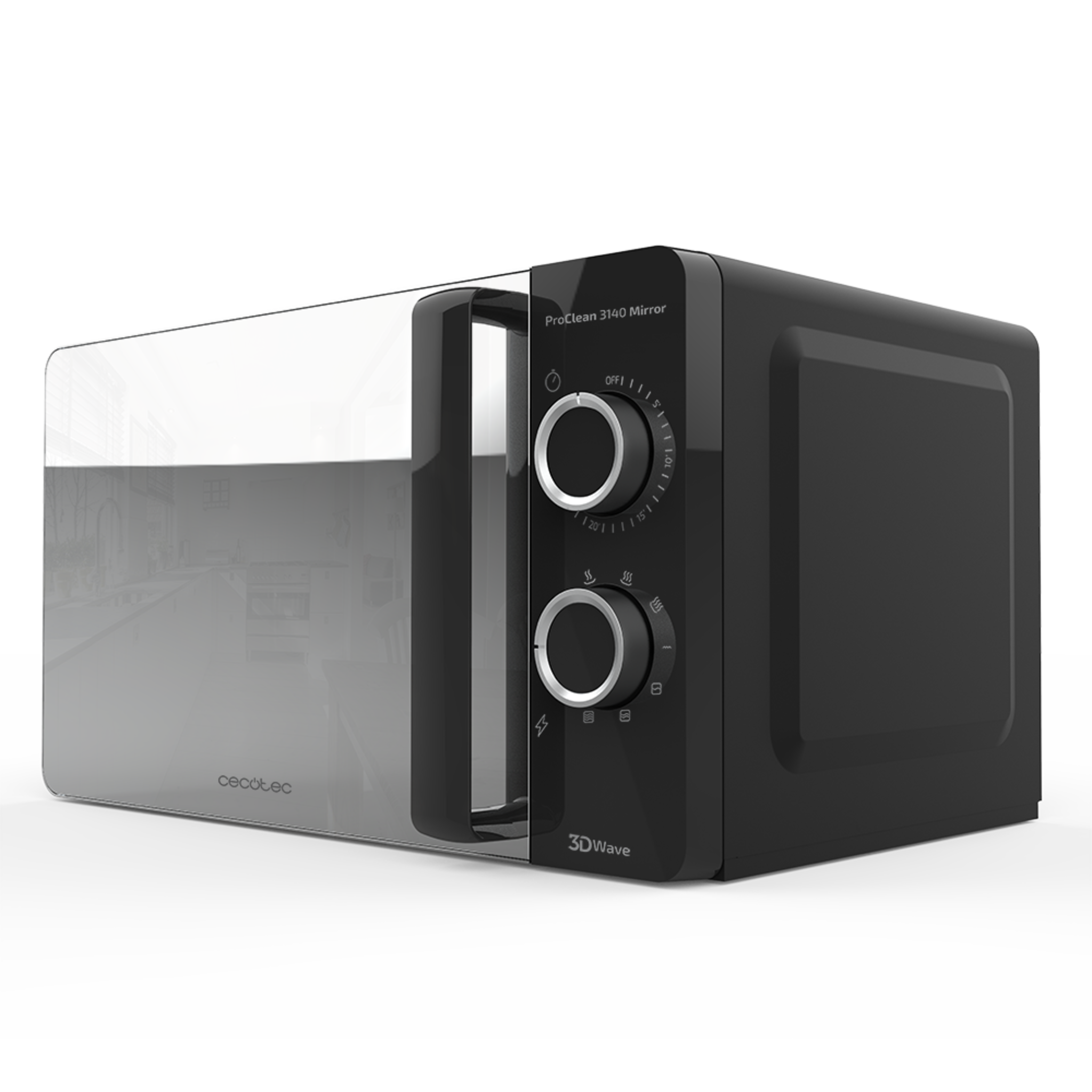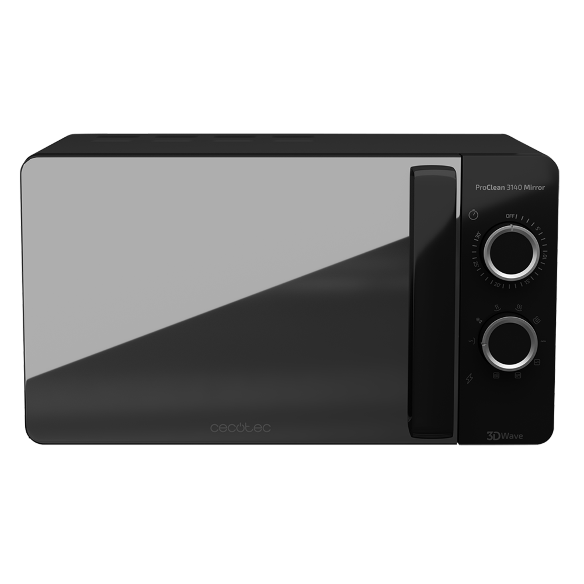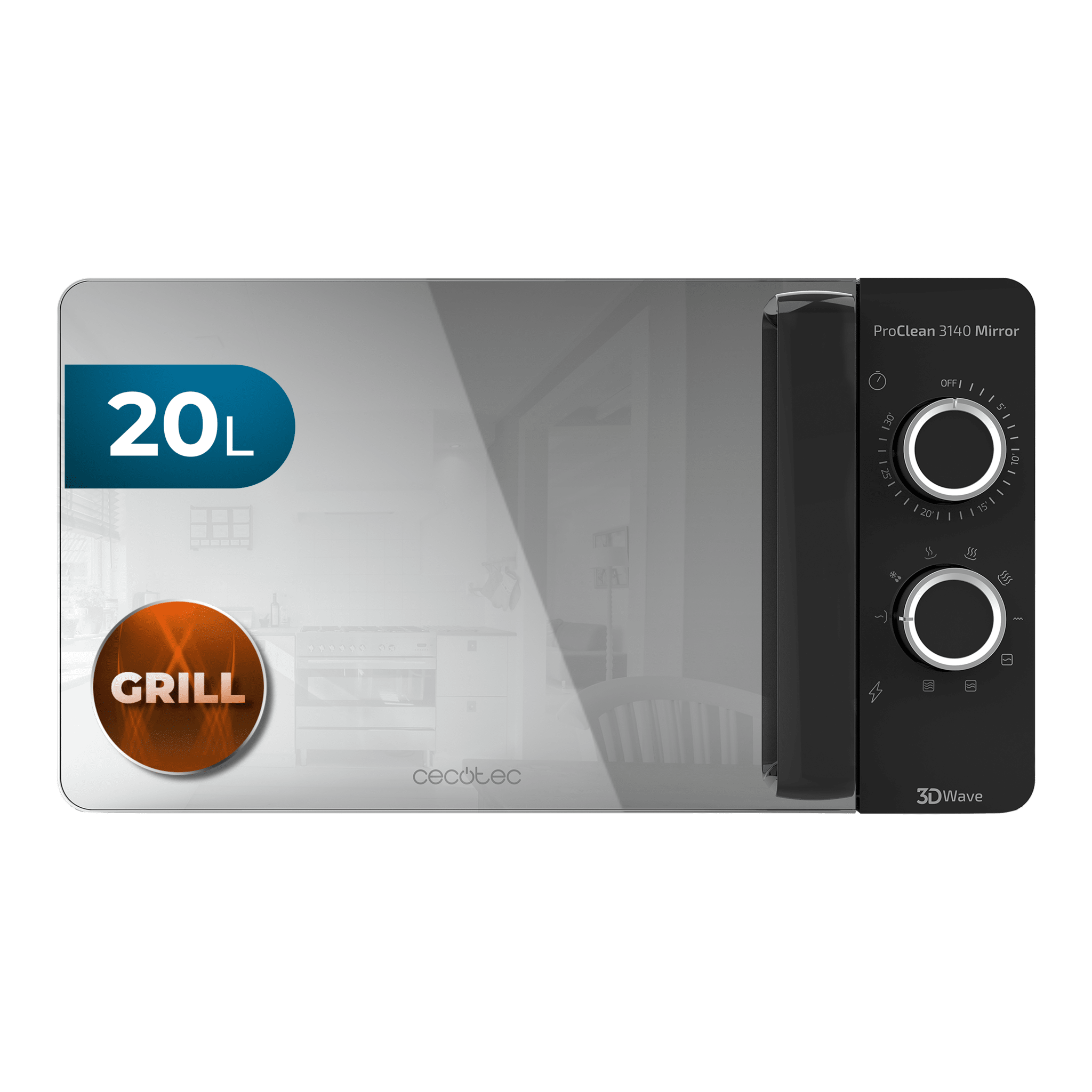 Microondas Negro ProClean 3140 Mirror. 700 W con 6 Niveles, Grill 800W, 20L, Revestimiento Ready2Clean para mejor Limpieza, Tecnología 3DWave, Diseño Efecto Espejo y Detalles metálicos