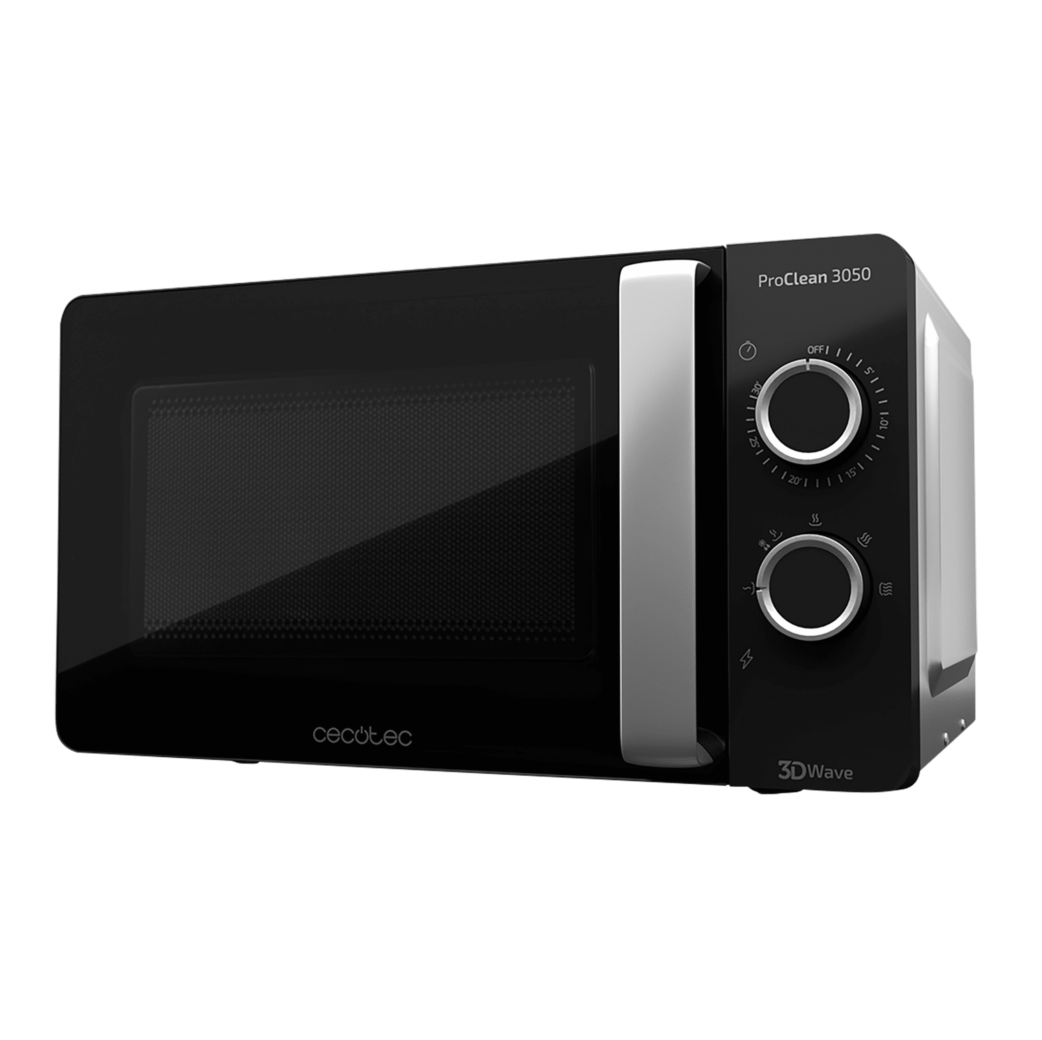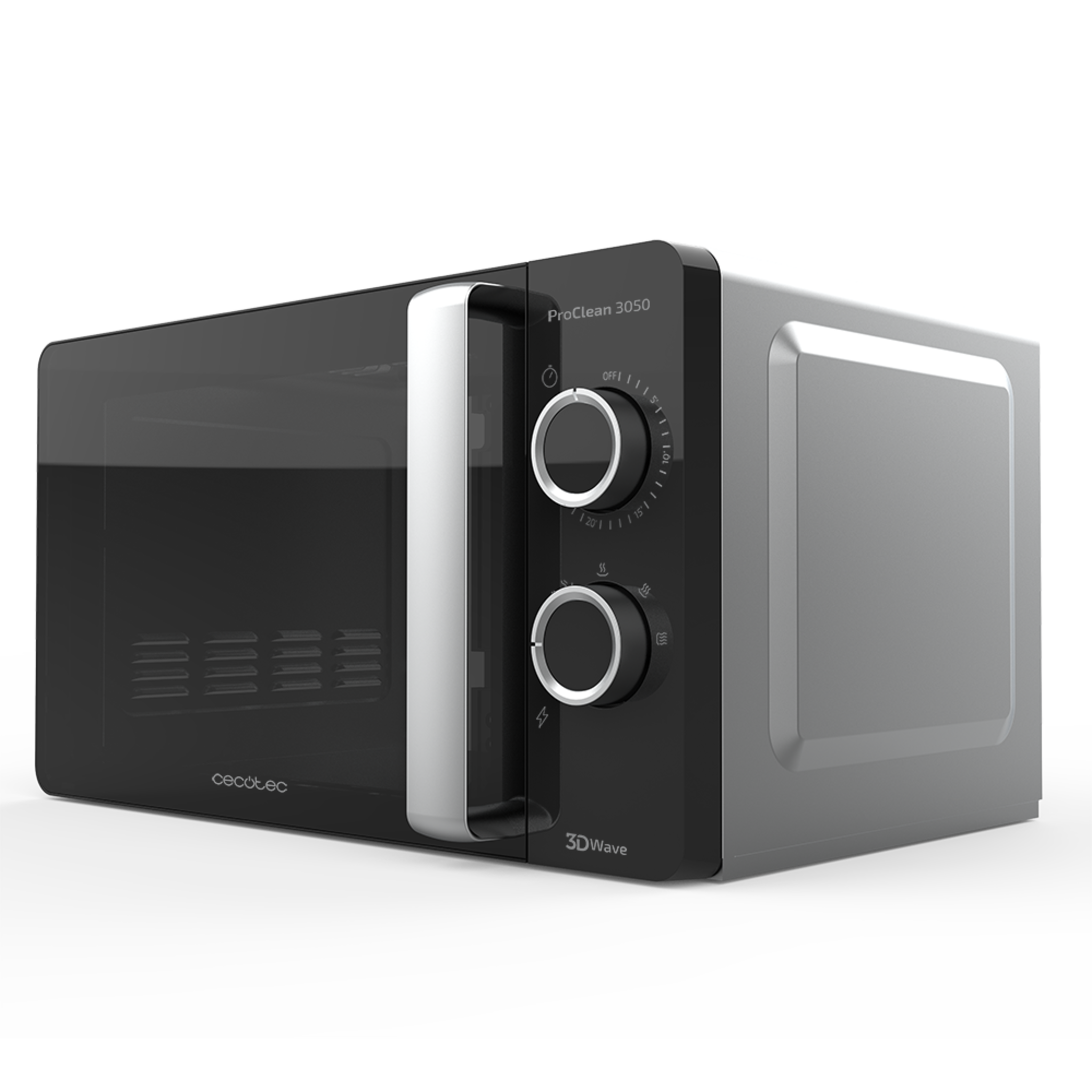 Microondas de 20 Litros ProClean 3050. 700 W de Potencia, Revestimiento Ready2Clean, 6 Niveles Funcionamiento, Temporizador 30 min, Modo Descongelar, Color Negro y Plata