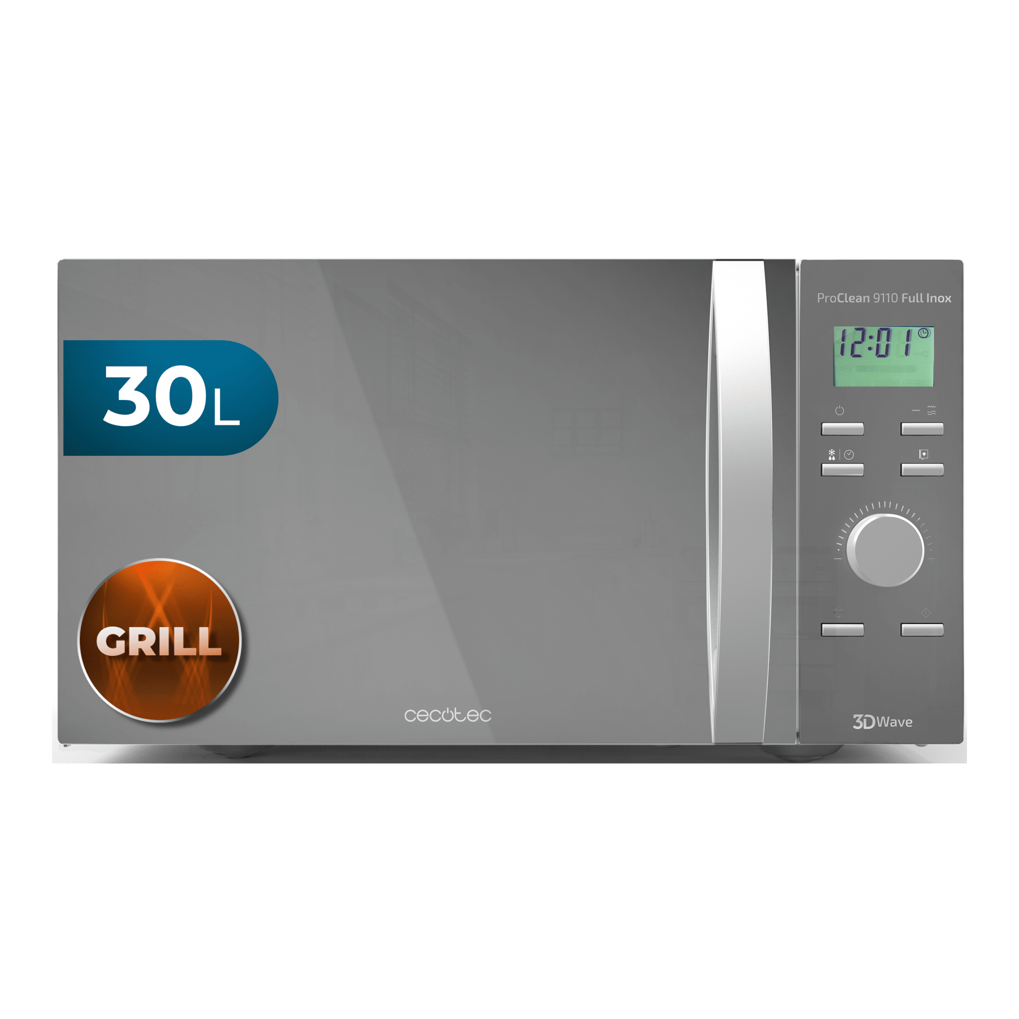 Microondas con Grill ProClean 9110 Full Inox. 1000 W, 30 Litros, 5 niveles de Potencia, 8 Programas, Temporizador de 60 mins, Revestimiento Full Inox, Diseño frontal de Espejo