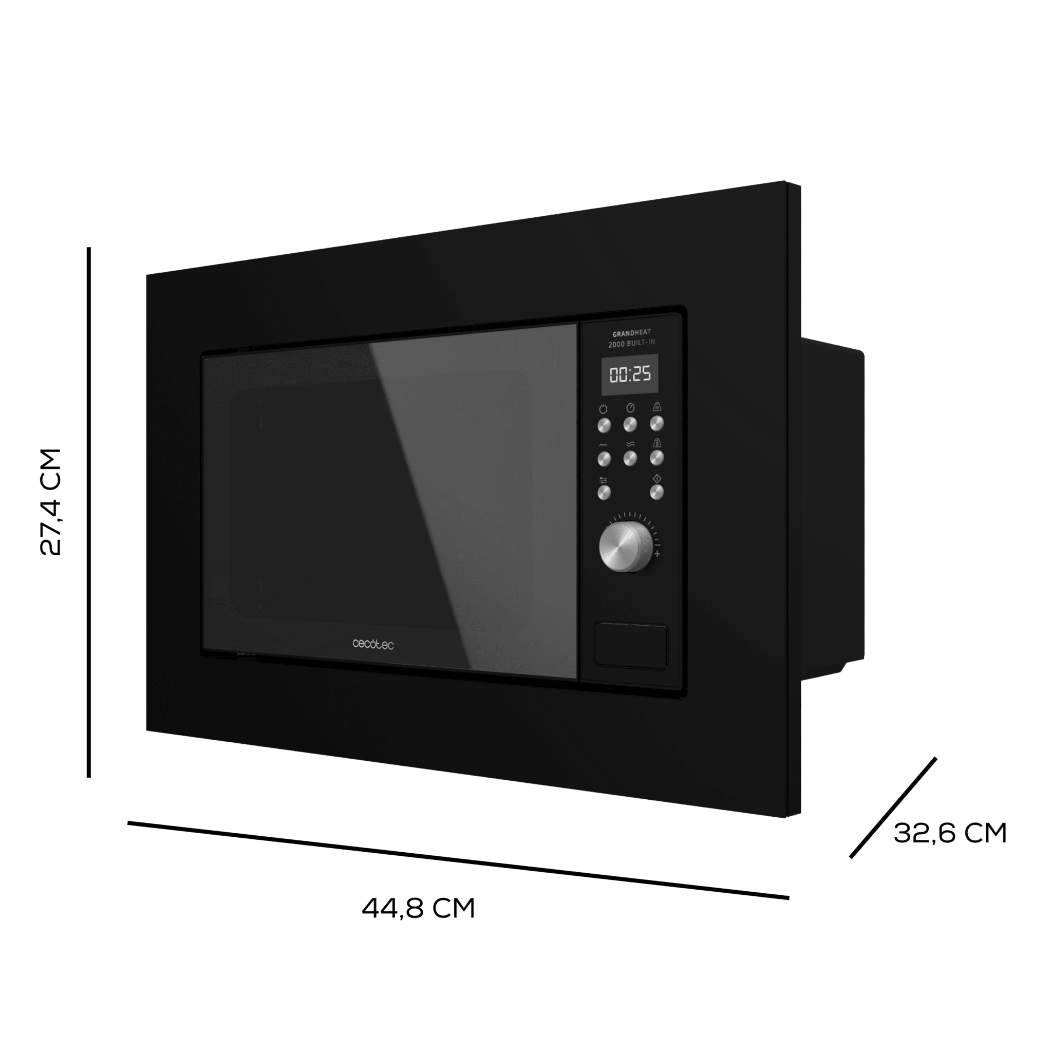 Microondas encastrable Digital GrandHeat 2000 Built-In Black. 700W, Integrable, 20 l, Grill, 9 Funciones preconfiguradas, Quick Start, Diseño elegante