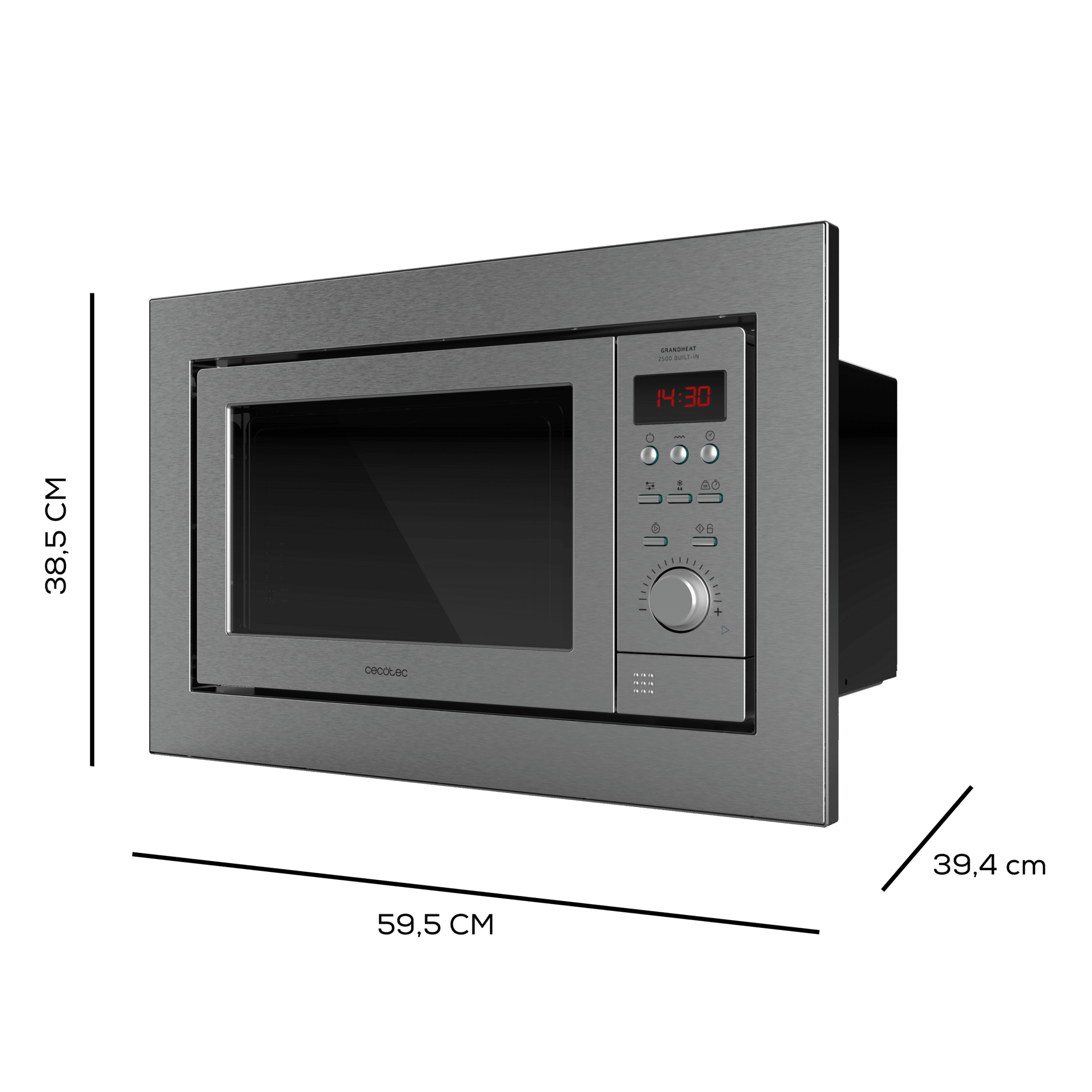 Microondas encastrable digital de 25 litros de capacidad con grill y 900W de potencia.