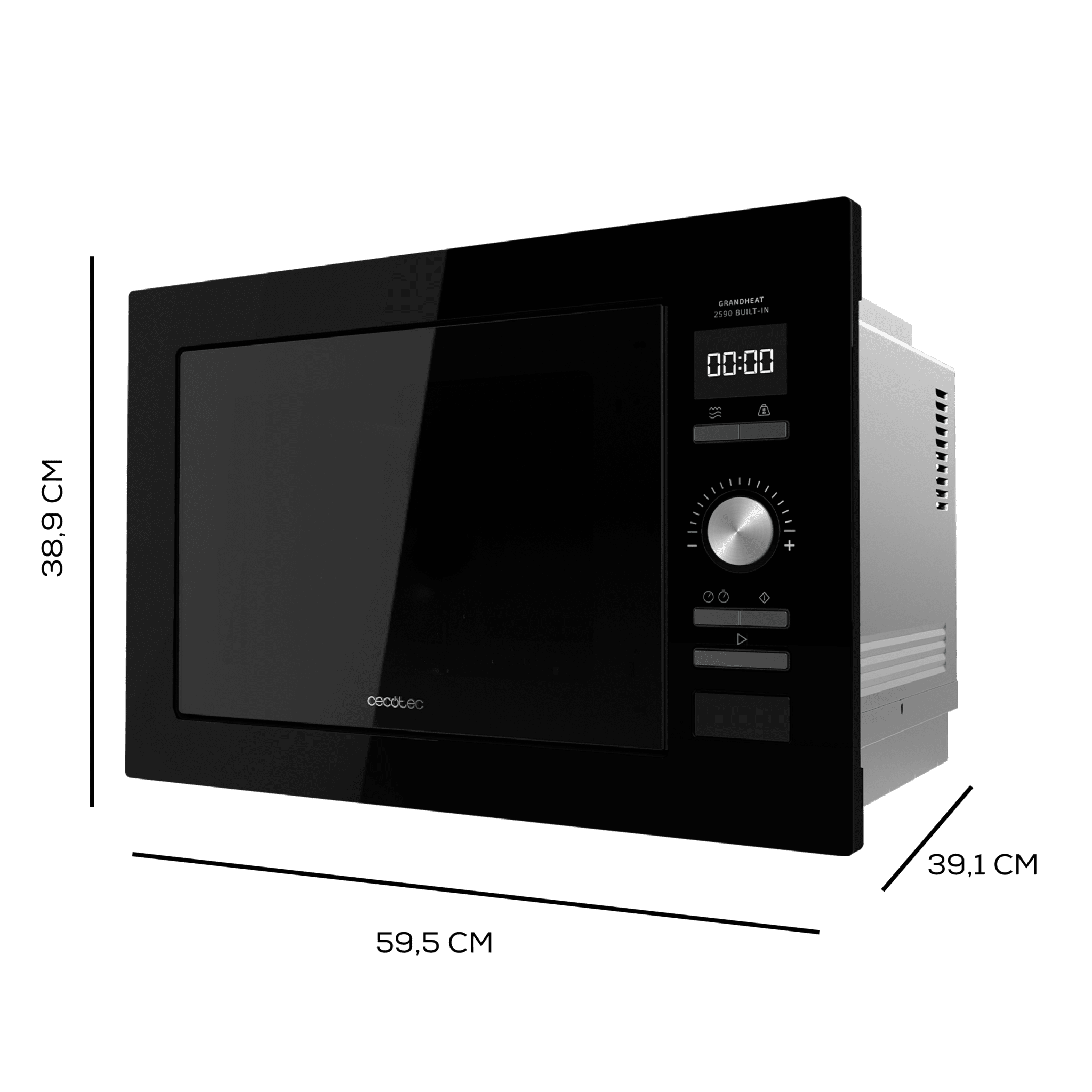 Microondas encastrable Digital GrandHeat 2590 Built-In Black. 900 W, Integrable, 25 Litros, Táctil, Grill 1000 W, 8 Funciones preconfiguradas, Temporizador