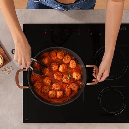 Olla baja de 28 cm de aluminio FORJADO, de 4,1 L de capacidad. Con revestimiento antiadherente de alta calidad Platinum Plus Teflon™ Nonstick Coating, 100 % libre de PFOA. Asas remachadas de acero inoxidable acabado en color oro rosa. Fondo difusor de calor Full Induction. Apta para horno hasta 230ºC sin tapa, apta para lavar en lavavajillas y para todo tipo de cocinas incluida inducción. Compuesta por 5 capas y 4 mm de base para inducción.