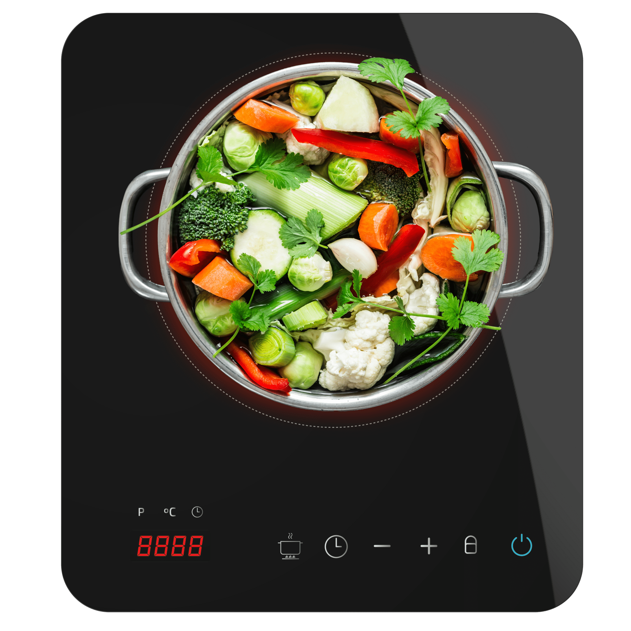 Cristal esmaltado de alta resistencia. 2000W. 10 Niveles. Display táctil. Temperatura de 60-240º. AutoOff y Termostato
