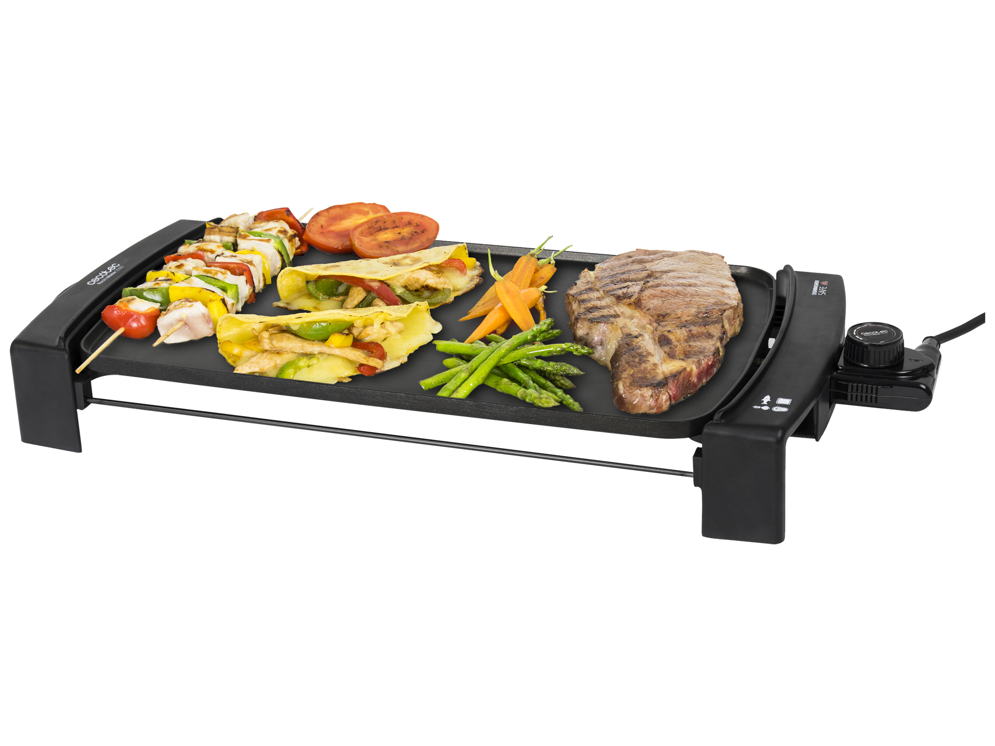 Plancha de Asar Eléctrica Black&Water 2150. Potencia 2150 W, Cuerpo de Aluminio Fundido, Revestimiento Daikin, Termostato Regulable, Placa Apta para lavavajillas, Superficie 45x25cm
