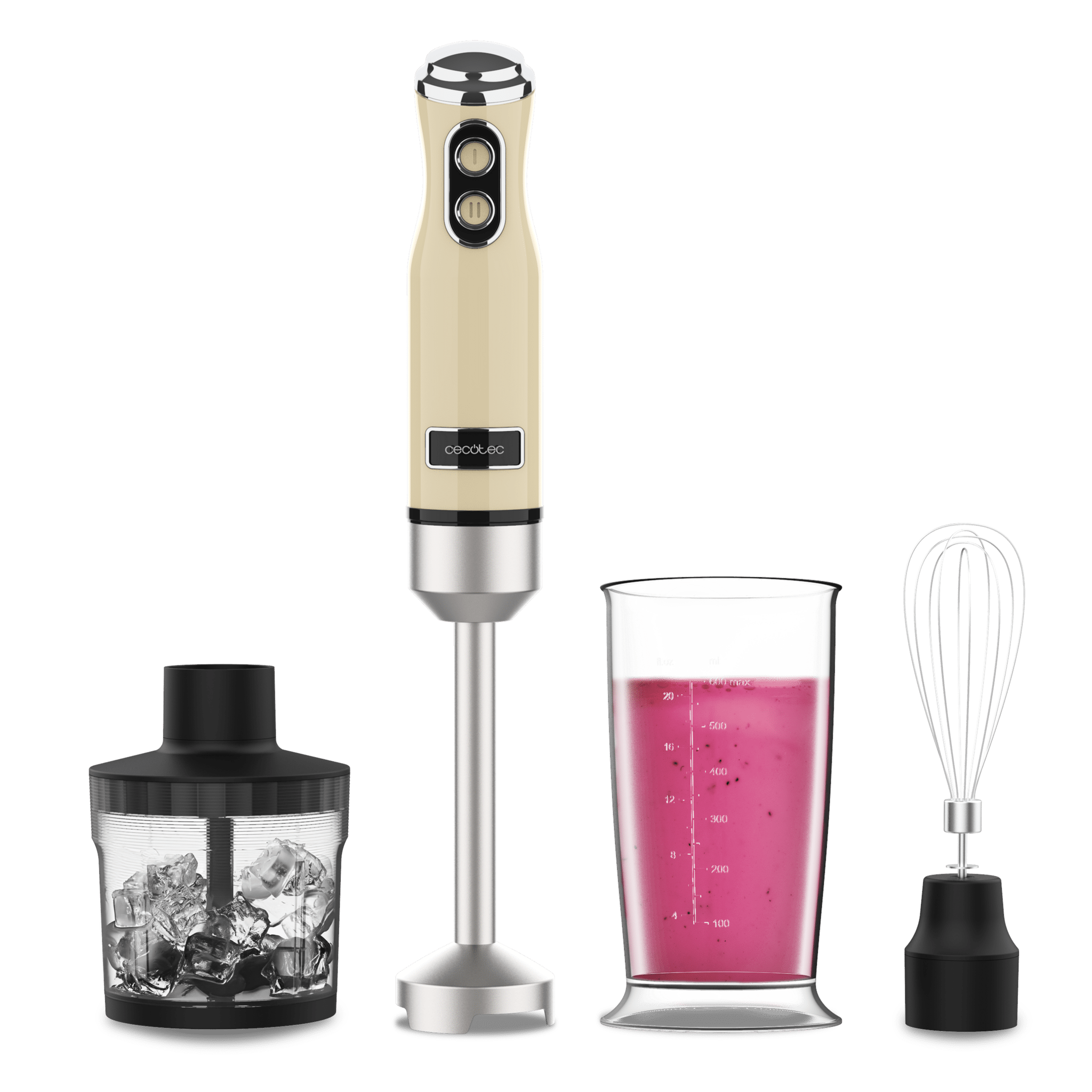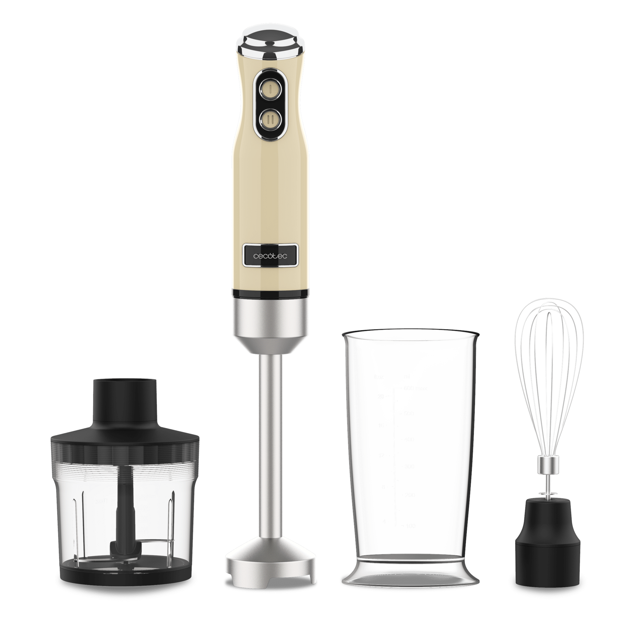 Batidora de mano retro con 1200W de potencia maxima, cuchilla de 4 hojas con recubrimiento de titanio negro y velocidad ajustable