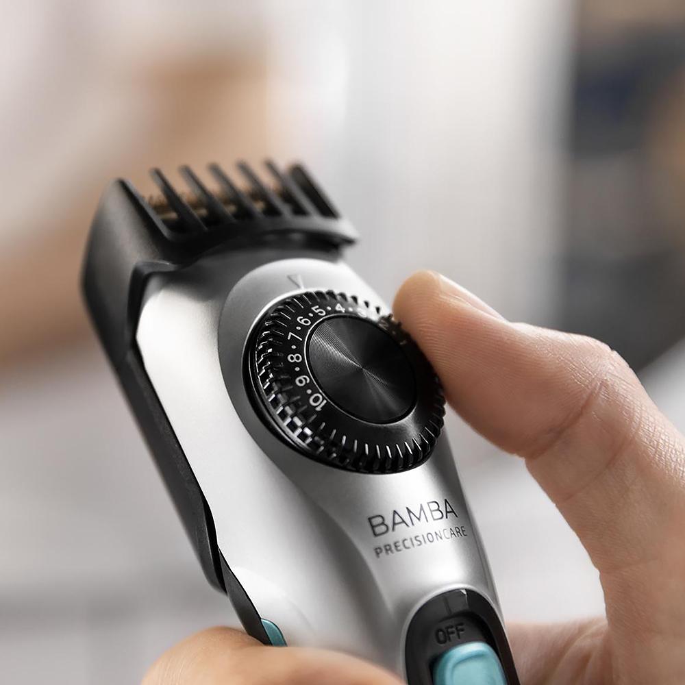 Barbero con dial de ajuste y cuchillas con revestimiento de titanio.