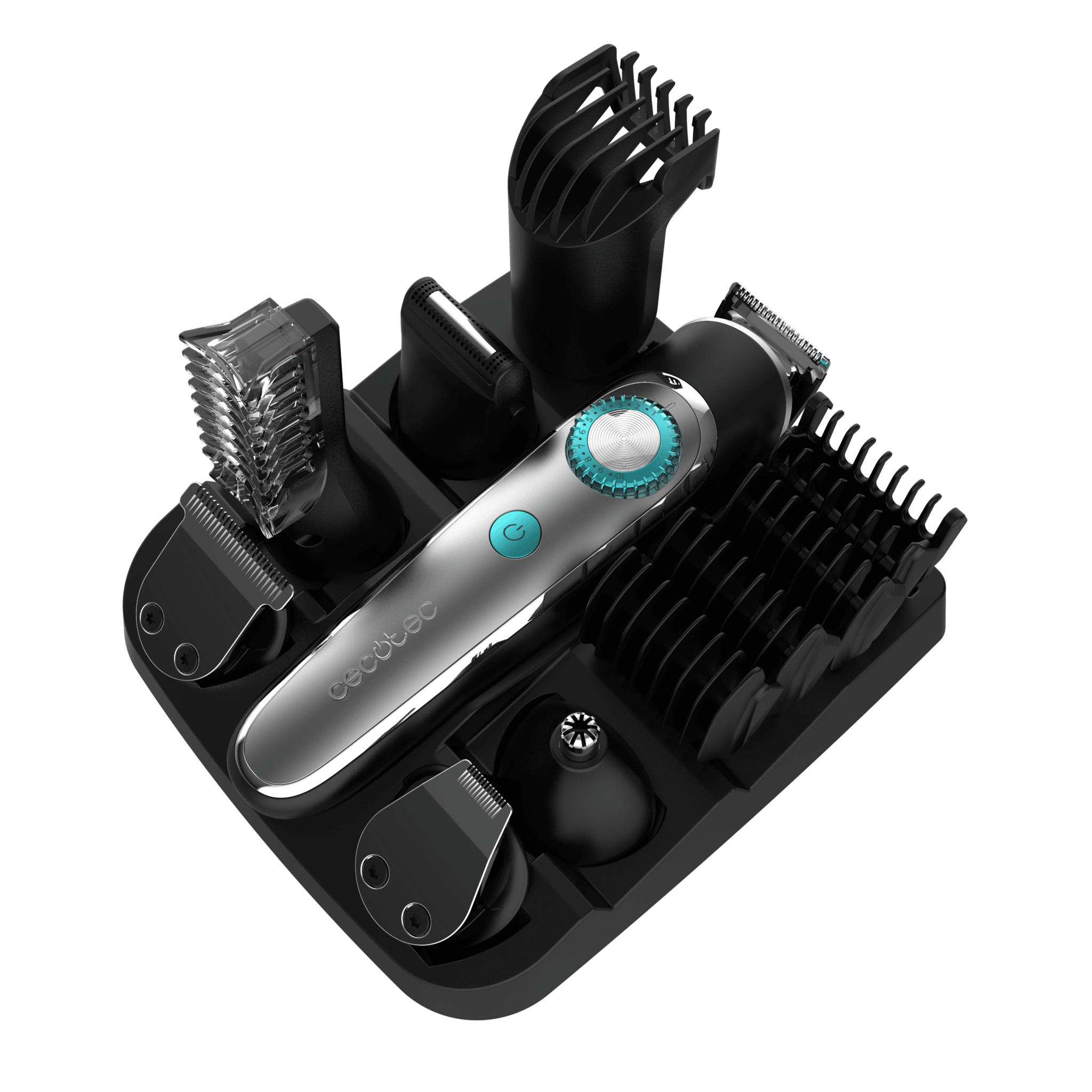 Multigrooming con 6 cabezales, con 5 peines en medidas de 3/6/9/12/15 mm, y 2 peines regulables de 1 a 10 mm y de 11 a 20 mm, un peine corporal y resistencia IPX7