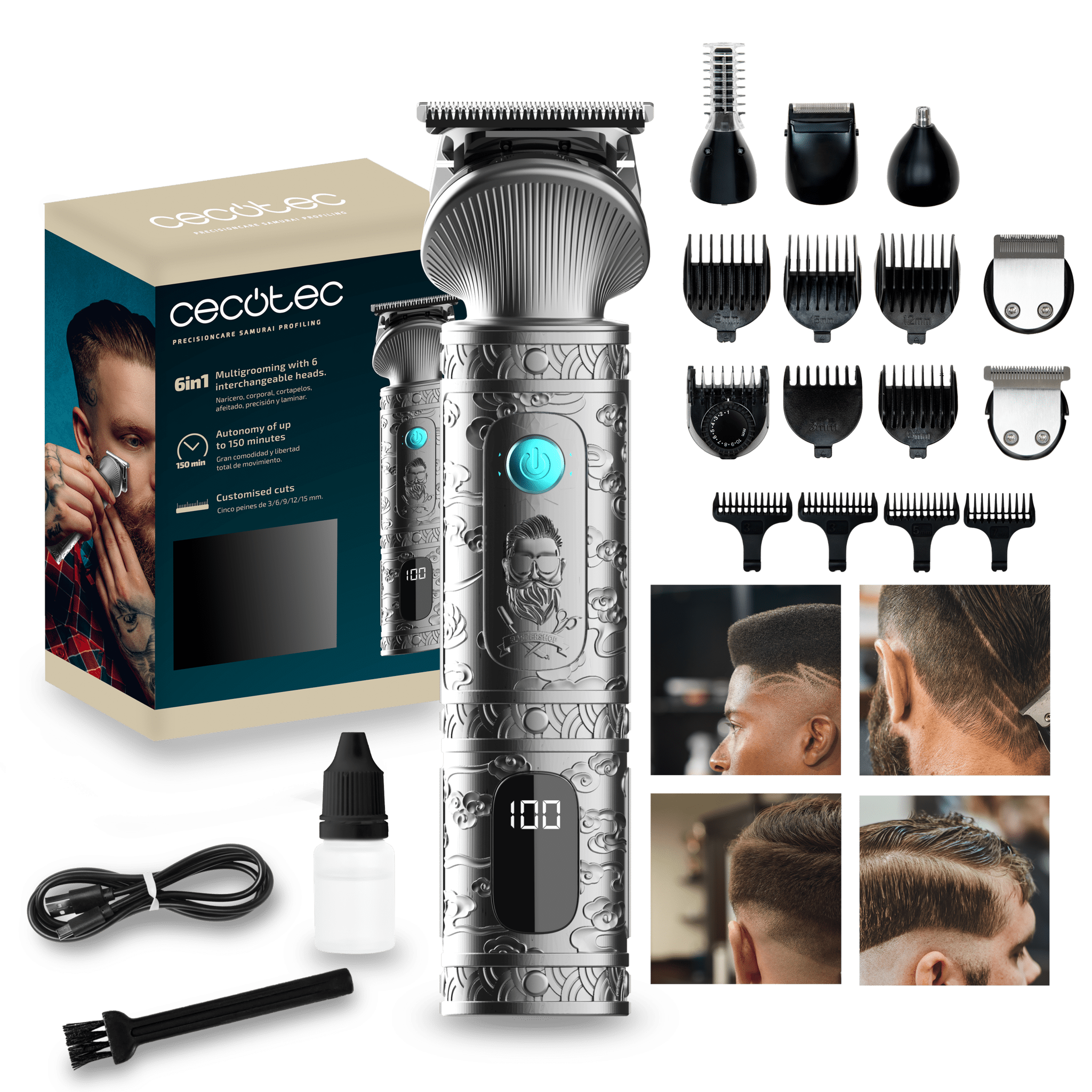 Perfiladora de pelo a batería con revestimiento de cerámica, con palanca de cambio de longitudes (0.5 – 3.5 mm) y con 4 cepillos 3/6/9/12 mm